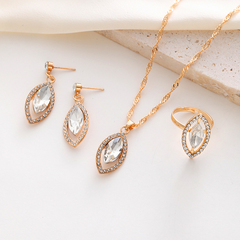 Zinc Alloy Jewelry Set, finger ring & earring & necklace, with Crystal, Teardrop, gold color plated, three pieces & for woman & with rhinestone, more colors for choice, US Ring Size:6-8, Length:Approx 18-20 Inch, Sold By Set