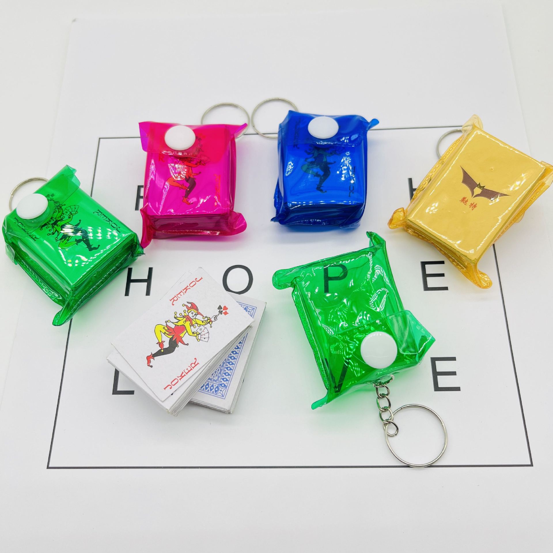 Zinc Alloy Key Chain Jewelry, Paper, with Zinc Alloy, Poker, Unisex, mixed colors, 40x30mm, Sold By PC