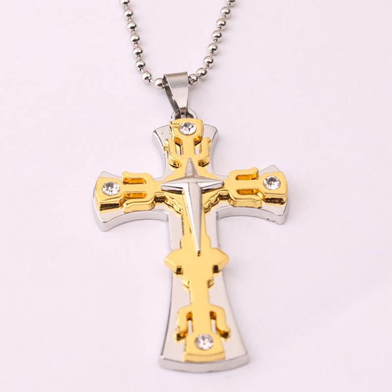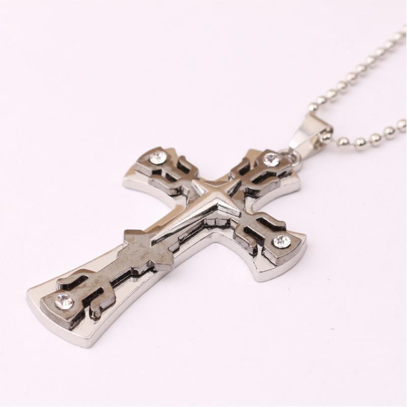 Zinc Alloy Necklace, Cross, plated, ball chain & for man & with rhinestone, more colors for choice, Length:Approx 19.5-31.5 Inch, Sold By PC