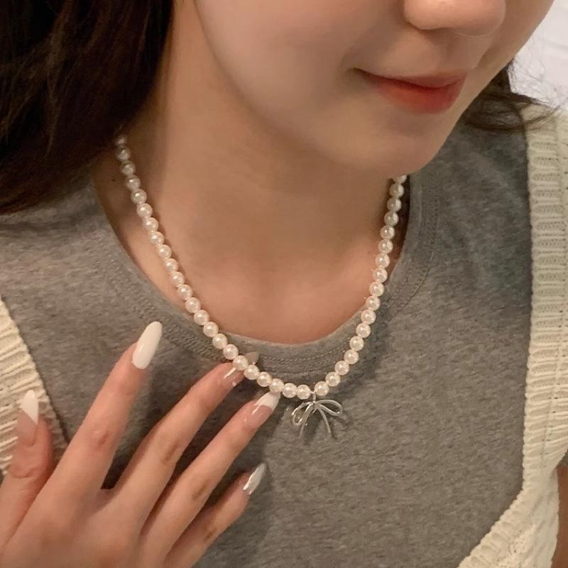 Zinc Alloy Necklace, with PU Leather & Plastic Pearl, Bowknot, plated, different styles for choice & for woman, Length:Approx 16-20 Inch, Sold By PC
