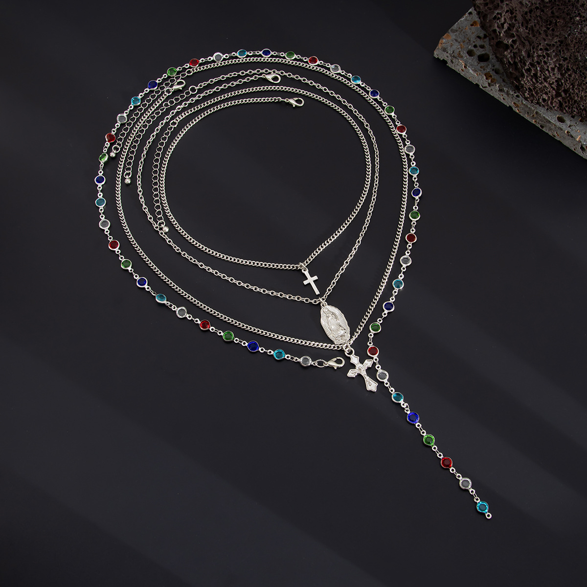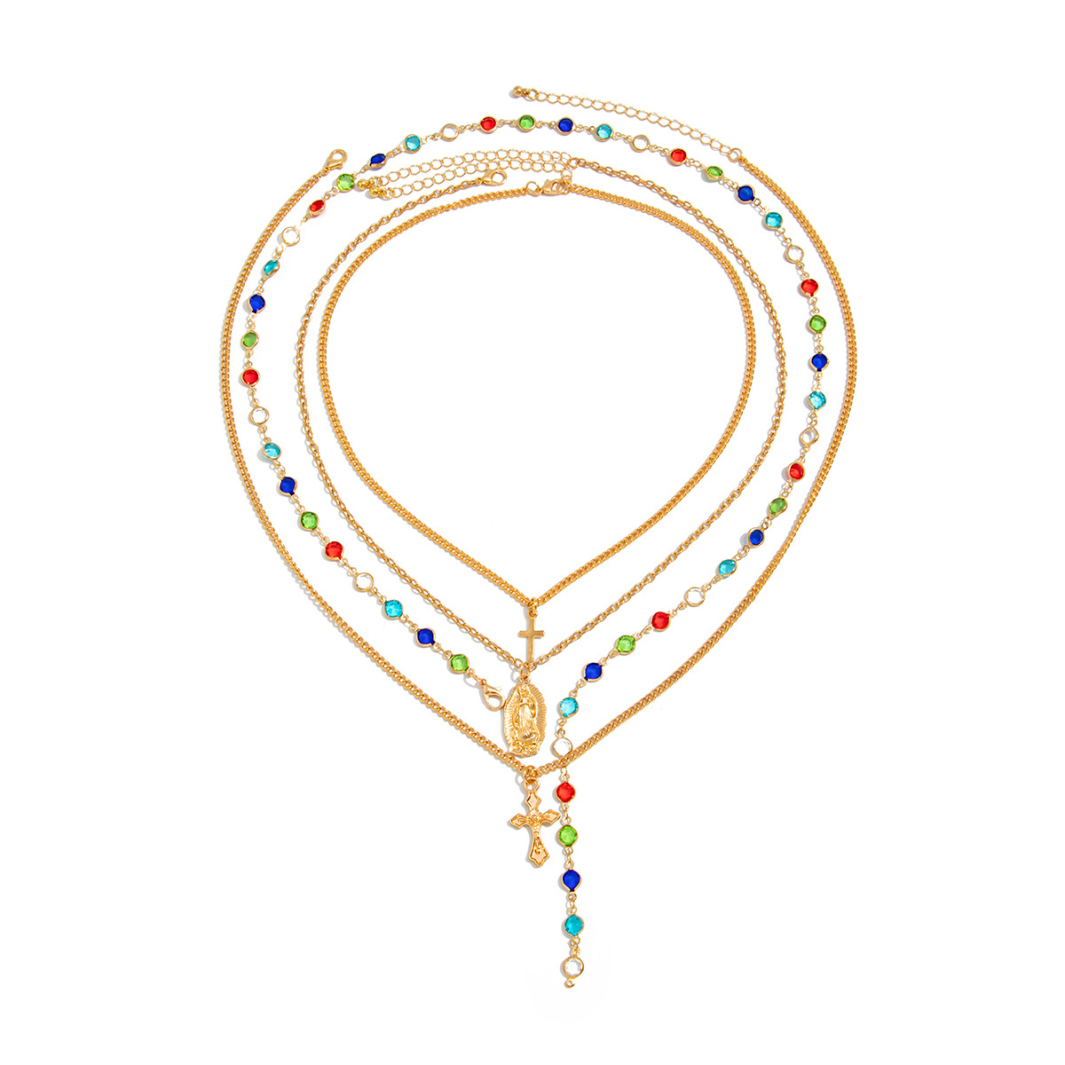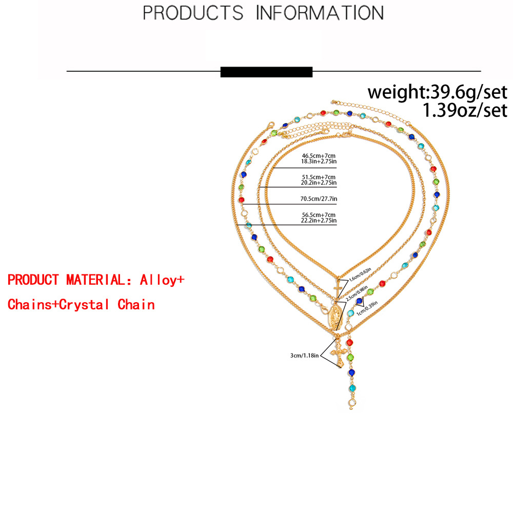 Zinc Alloy Necklace, with iron chain & Crystal, Cross, plated, multilayer & for man, more colors for choice, Sold By PC
