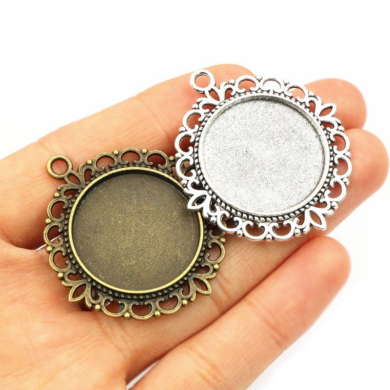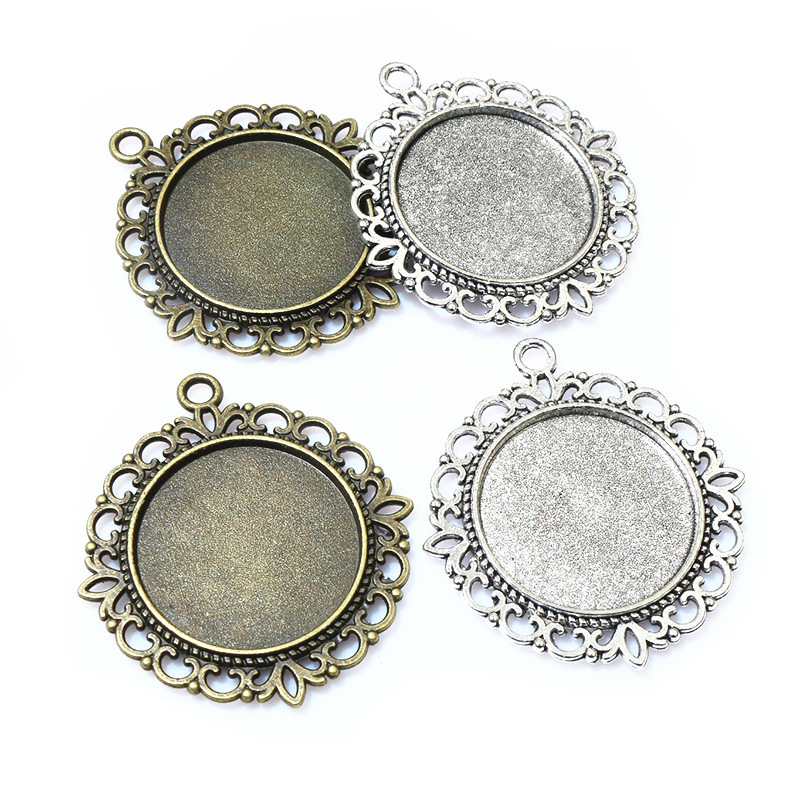 Zinc Alloy Pendant Cabochon Setting, plated, DIY & double-sided, more colors for choice, Inner diameter:25mm, Approx 100PCs/Bag, Sold By Bag
