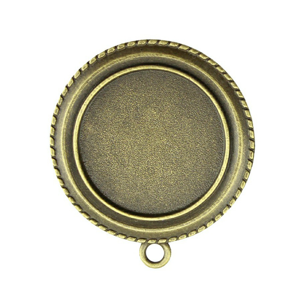 Zinc Alloy Pendant Cabochon Setting, Round, plated, DIY, antique bronze color, Inner Diameter:Approx 25mm, Sold By PC