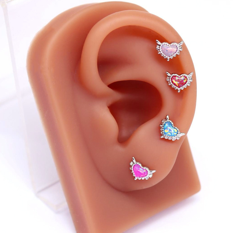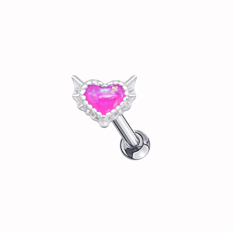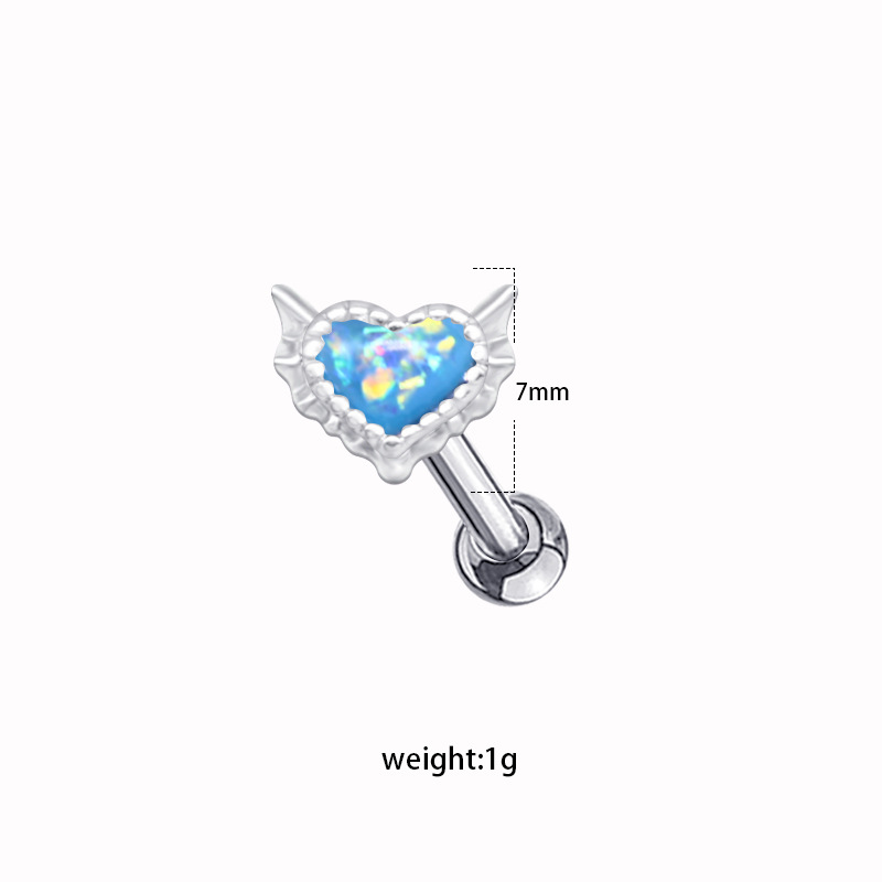 Zinc Alloy Piercing Earring, with Opal, Heart, fashion jewelry & Unisex, more colors for choice, 7mm, Sold By PC