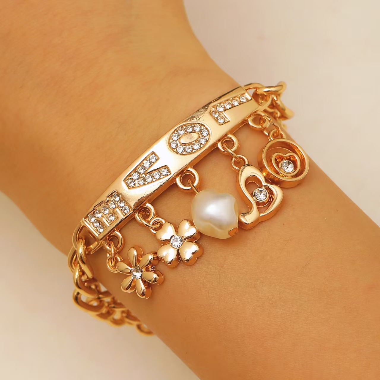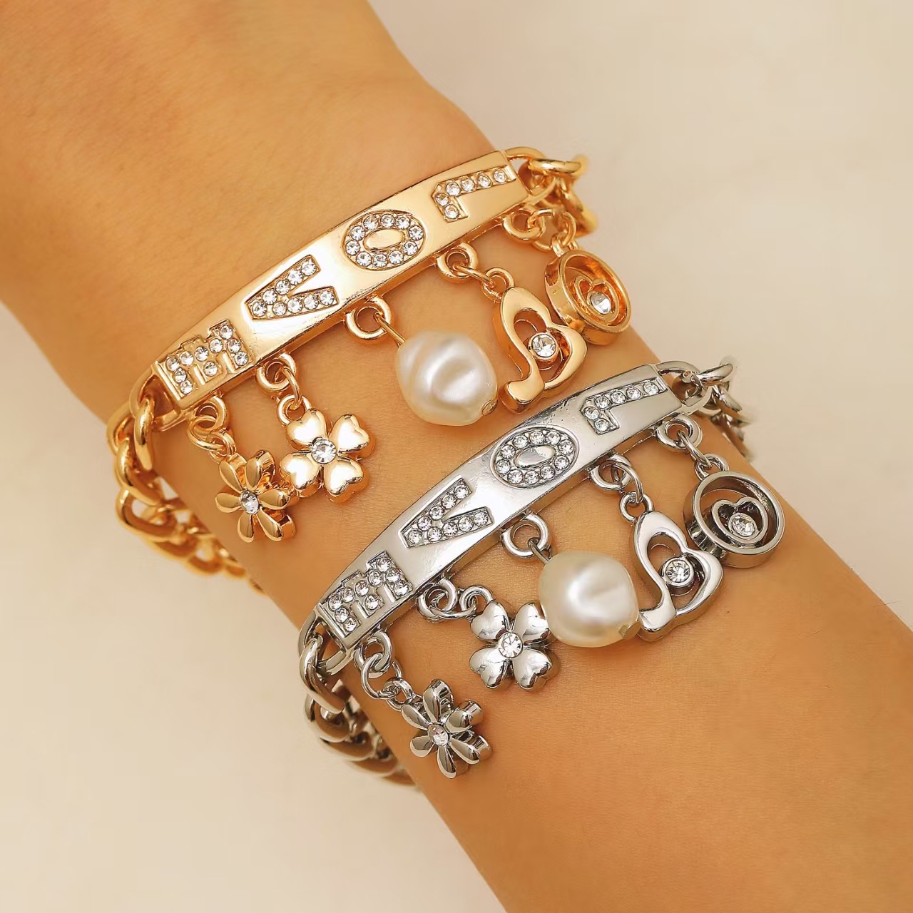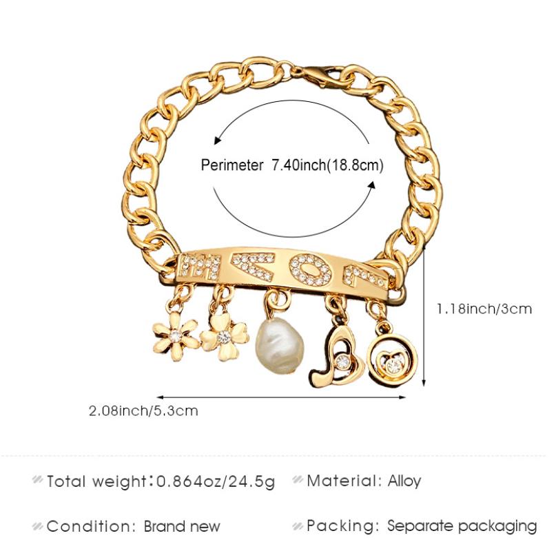 Zinc Alloy Rhinestone Bracelets, with Plastic Pearl, gold color plated, fashion jewelry & with rhinestone, more colors for choice, Sold By PC