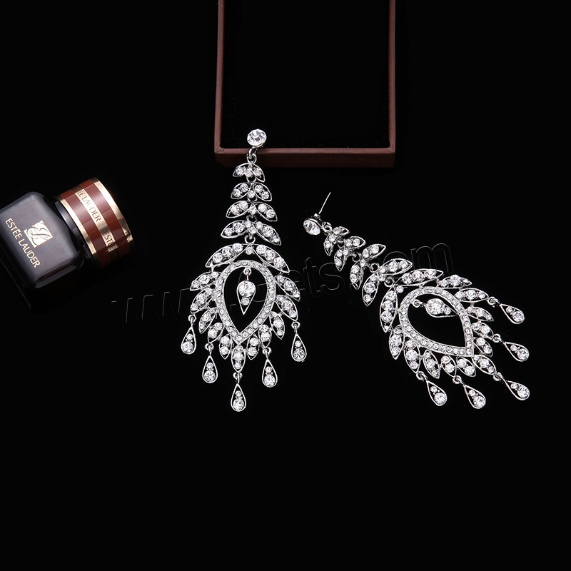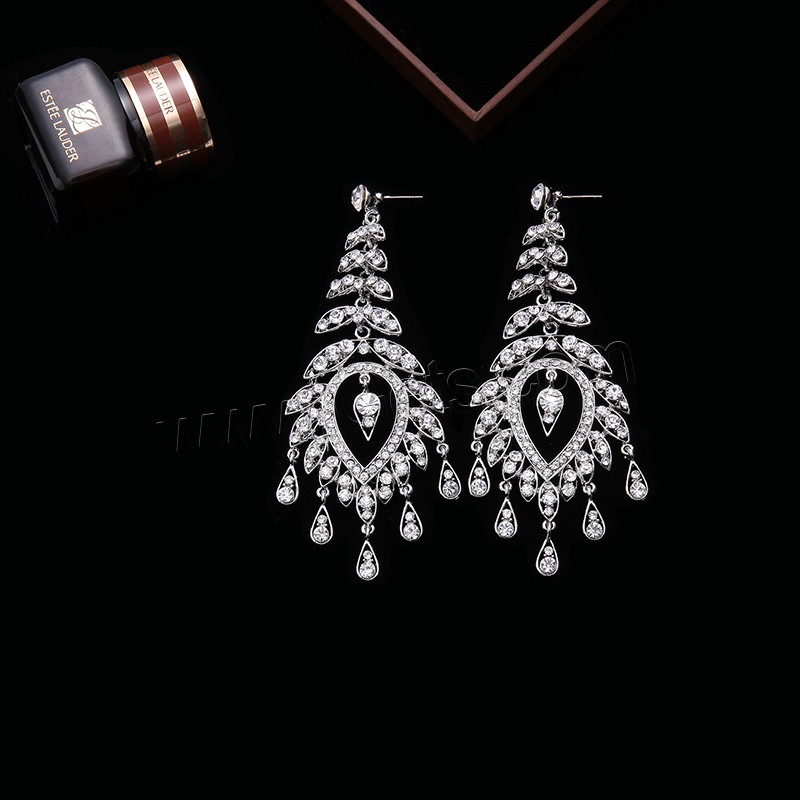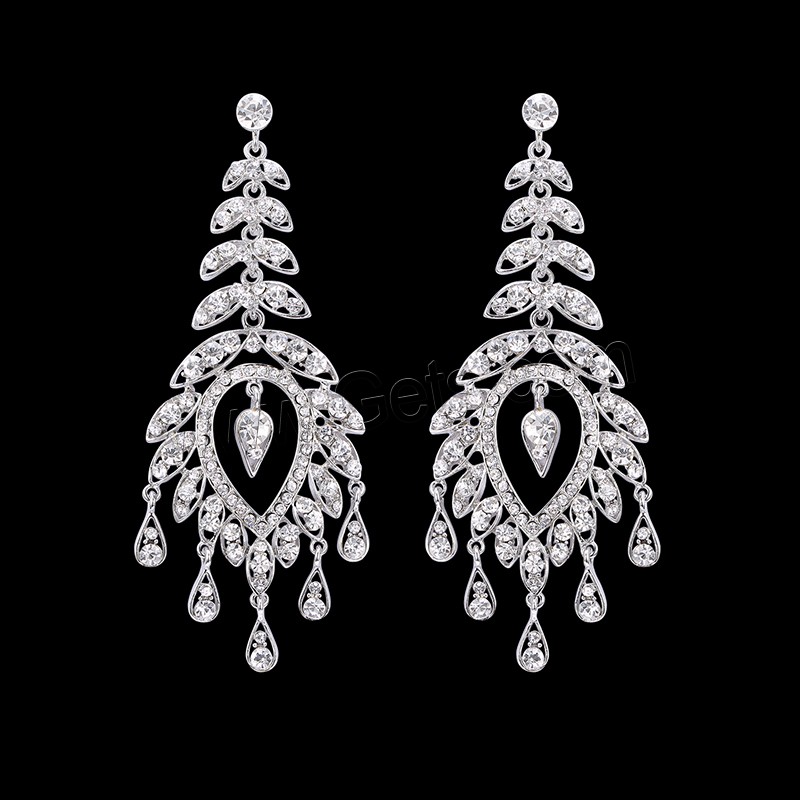 Zinc Alloy Rhinestone Drop Earring, stainless steel post pin, platinum color plated, with rhinestone, lead & cadmium free, 110x43mm, Sold By Pair