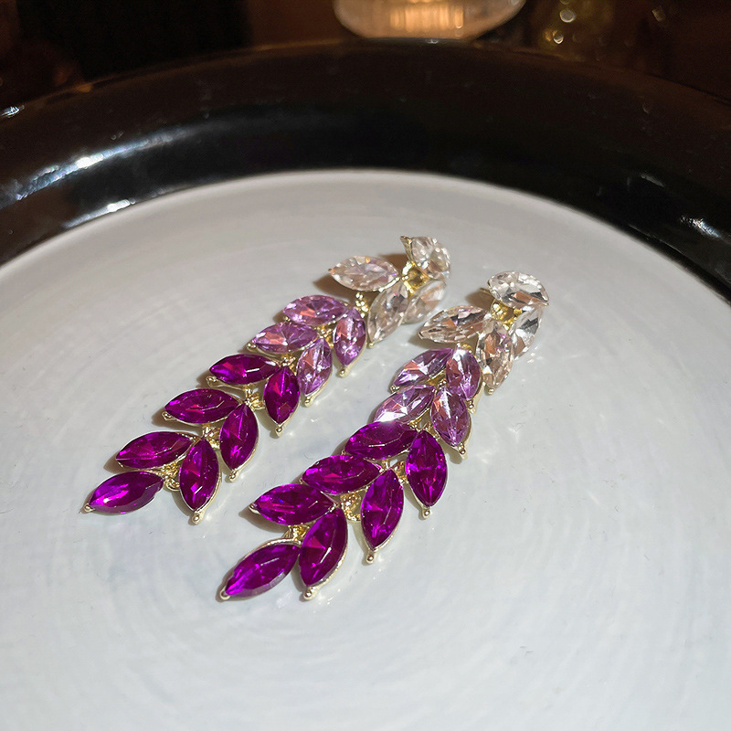 Zinc Alloy Rhinestone Drop Earring, Leaf, plated, for woman & with rhinestone