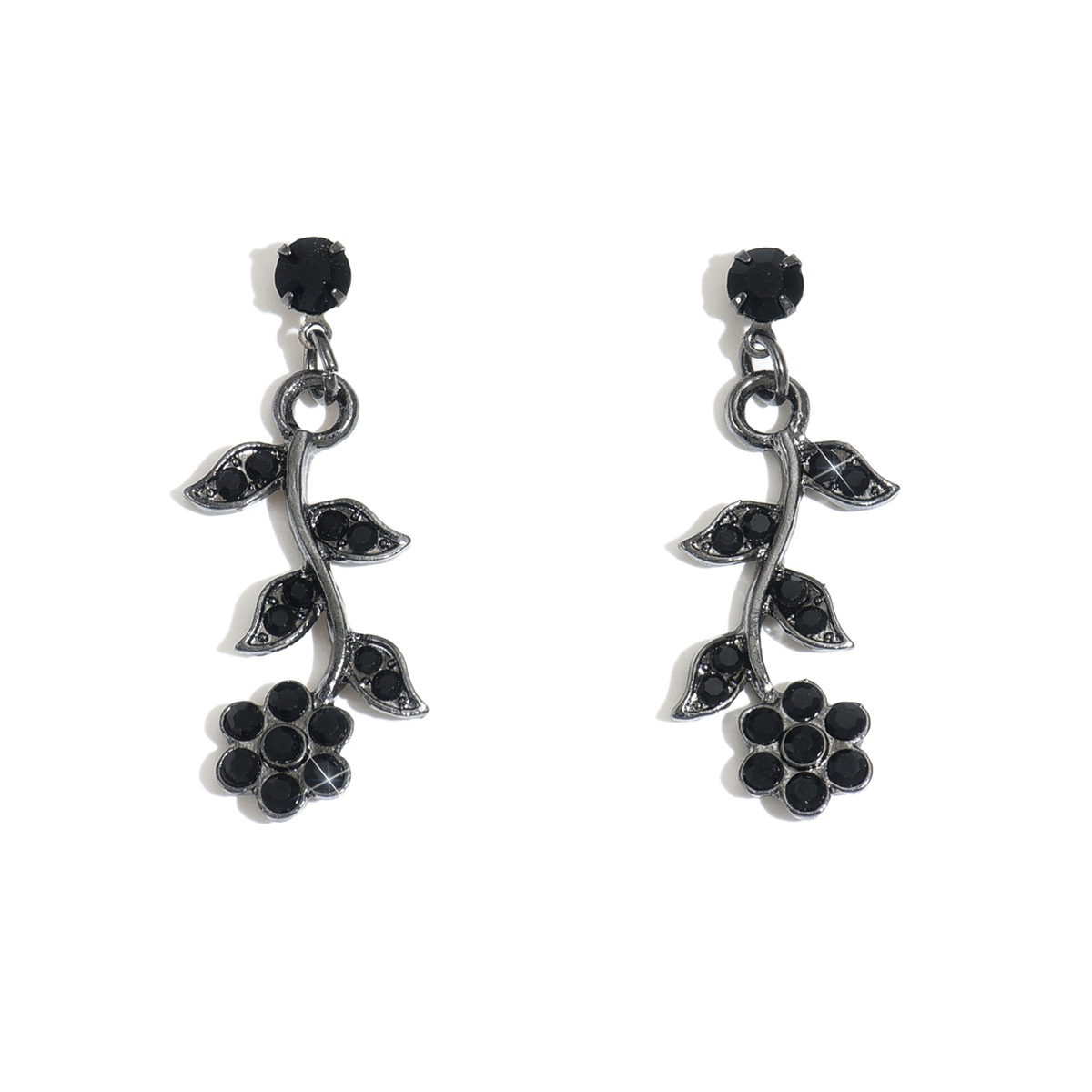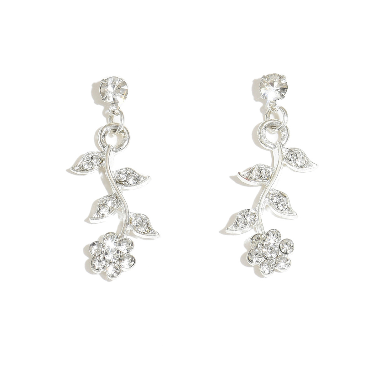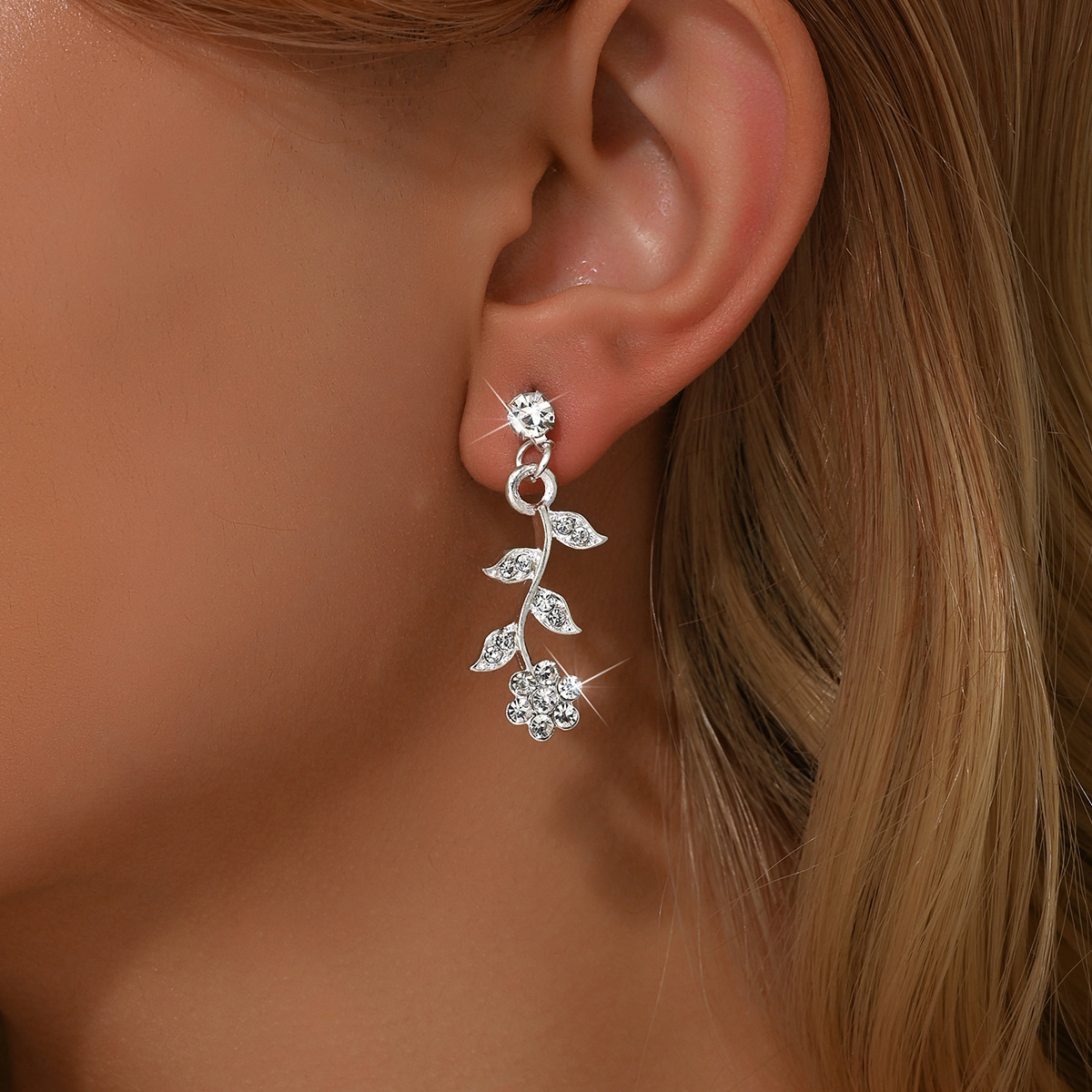 Zinc Alloy Rhinestone Drop Earring, Flower, silver color plated, for woman & with rhinestone