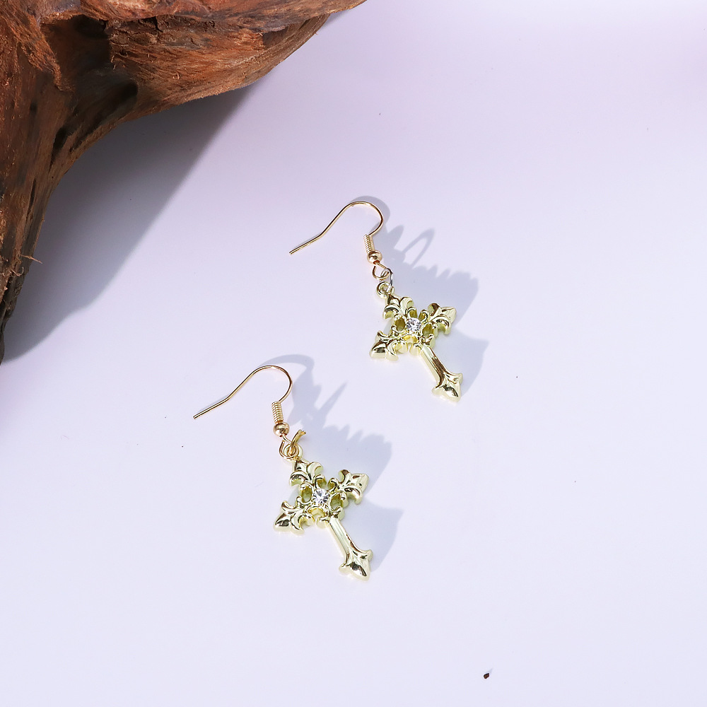 Zinc Alloy Rhinestone Drop Earring, Cross, gold color plated, fashion jewelry & with rhinestone, more colors for choice, Sold By Pair