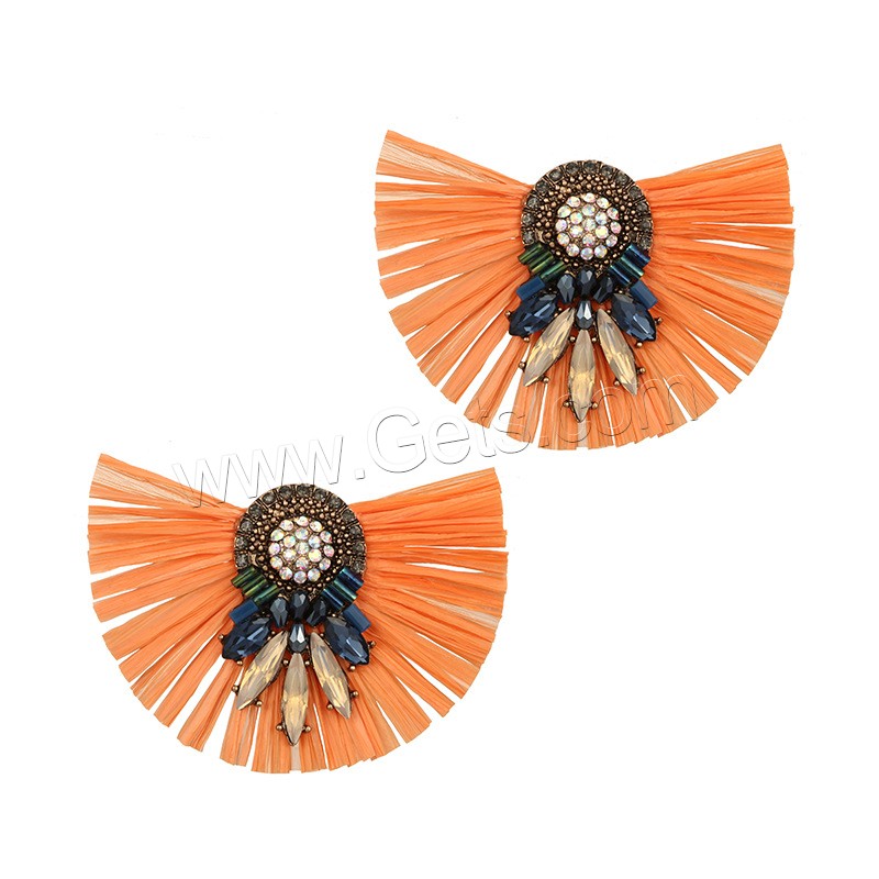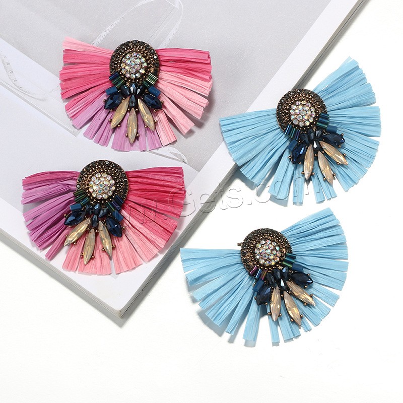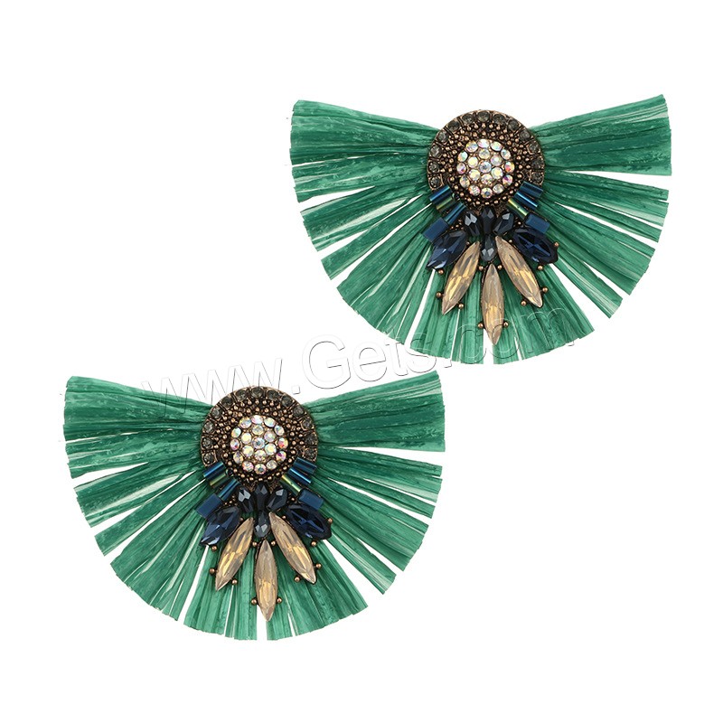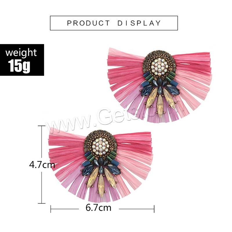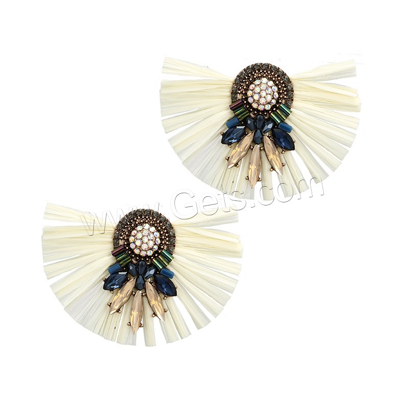 Zinc Alloy Rhinestone Stud Earring, with Rafi Straw, antique gold color plated, for woman & with rhinestone, more colors for choice, 67x47mm, Sold By Pair