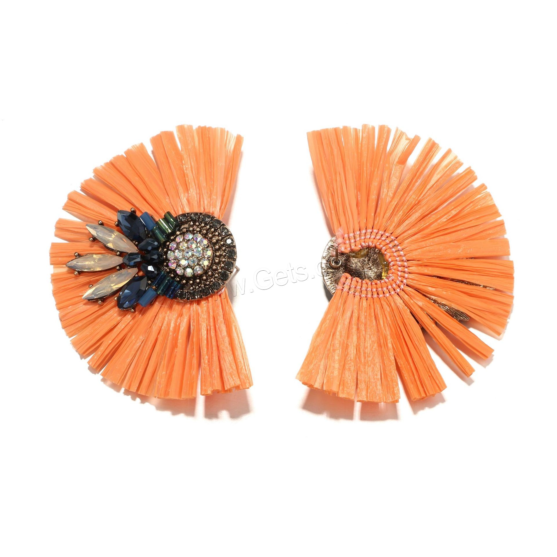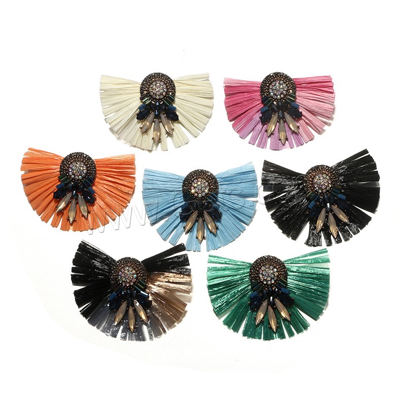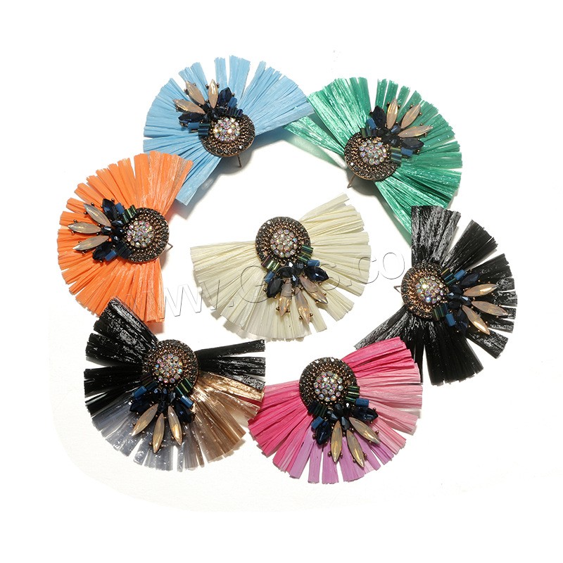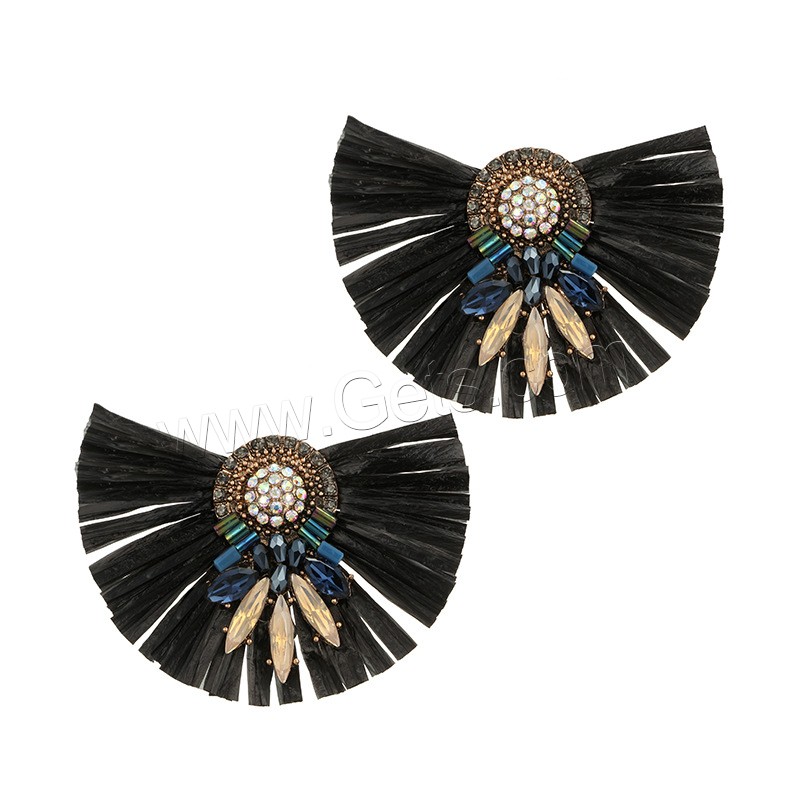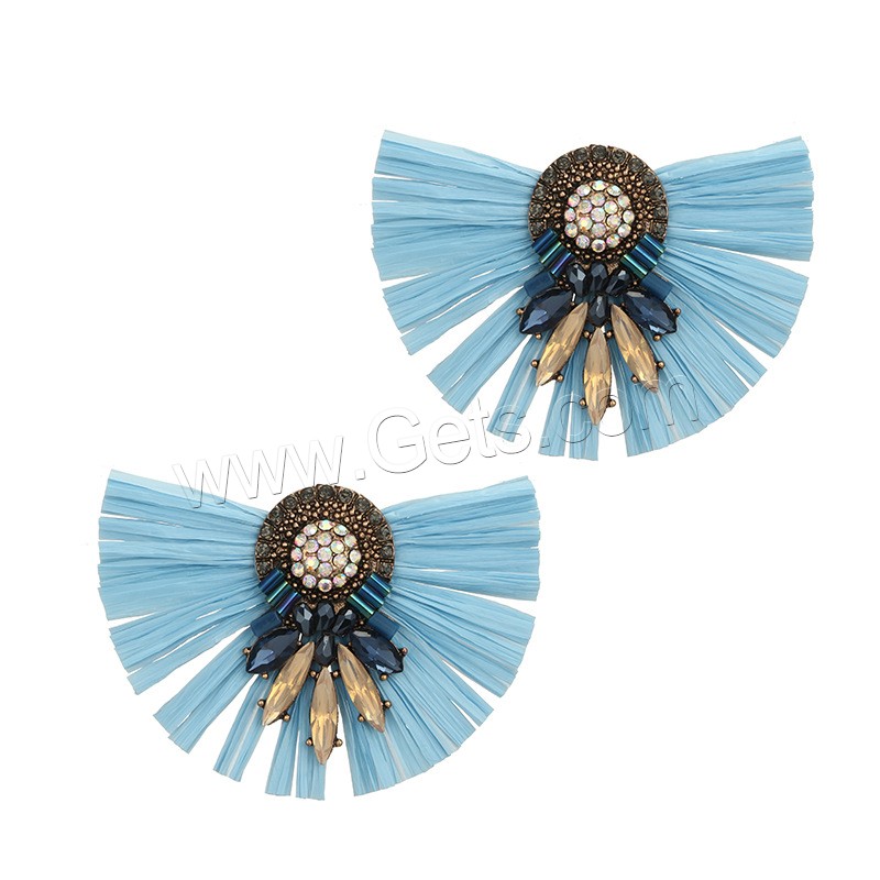 Zinc Alloy Rhinestone Stud Earring, with Rafi Straw, antique gold color plated, for woman & with rhinestone, more colors for choice, 67x47mm, Sold By Pair