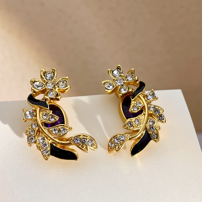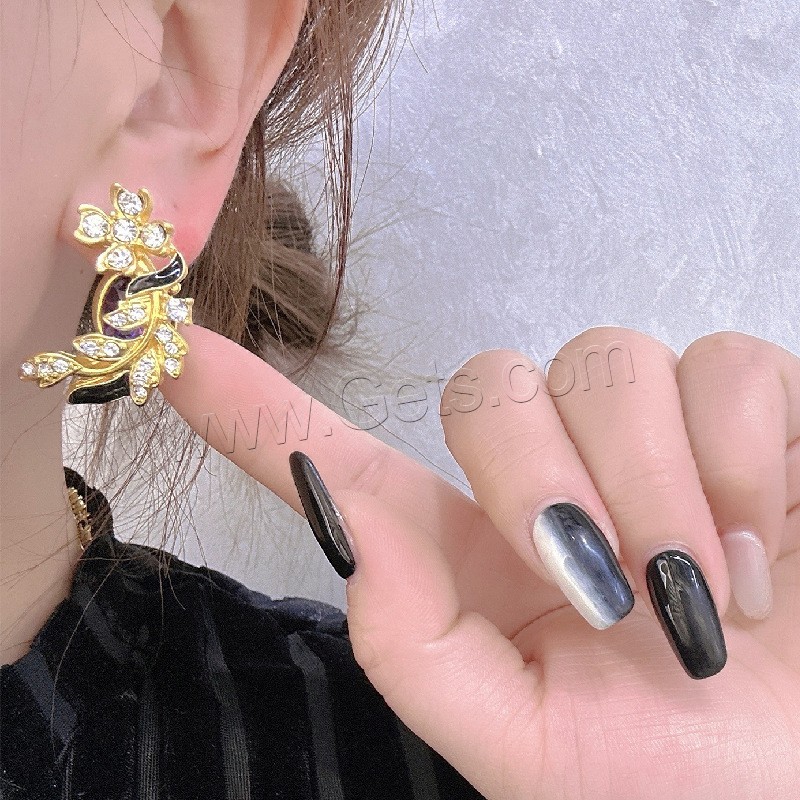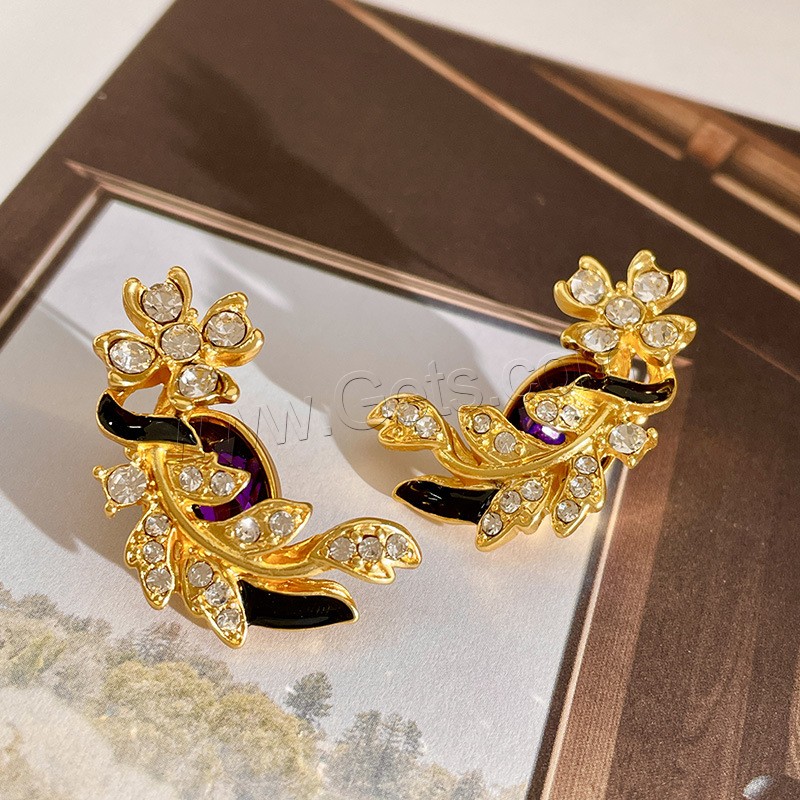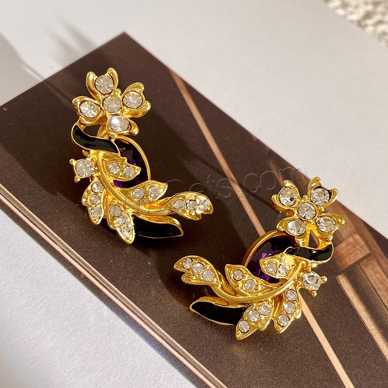 Zinc Alloy Rhinestone Stud Earring, gold color plated, for woman & with rhinestone