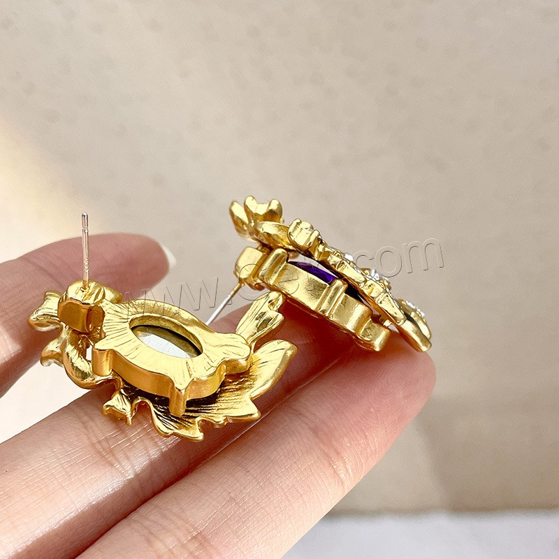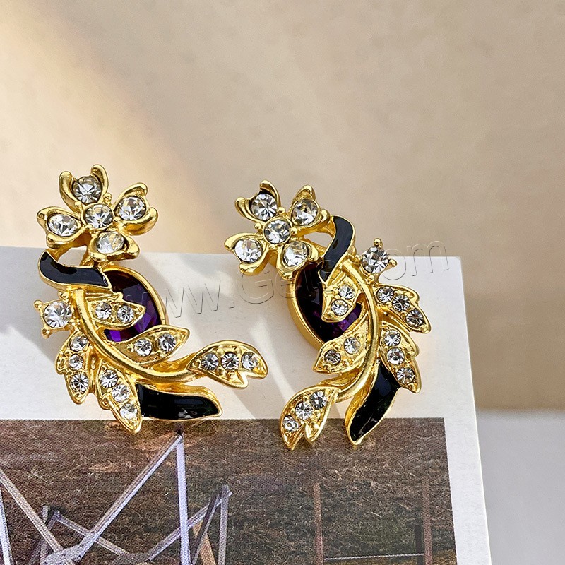 Zinc Alloy Rhinestone Stud Earring, with Crystal, stainless steel post pin, Flower, with rhinestone, nickel, lead & cadmium free