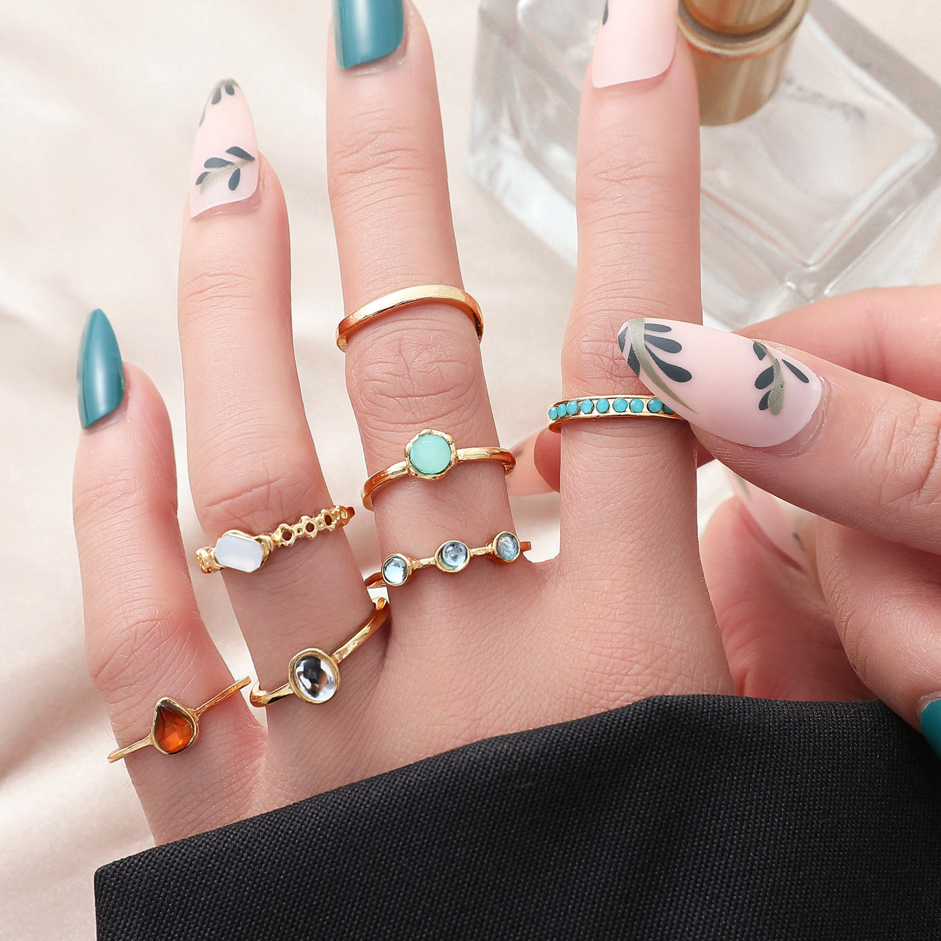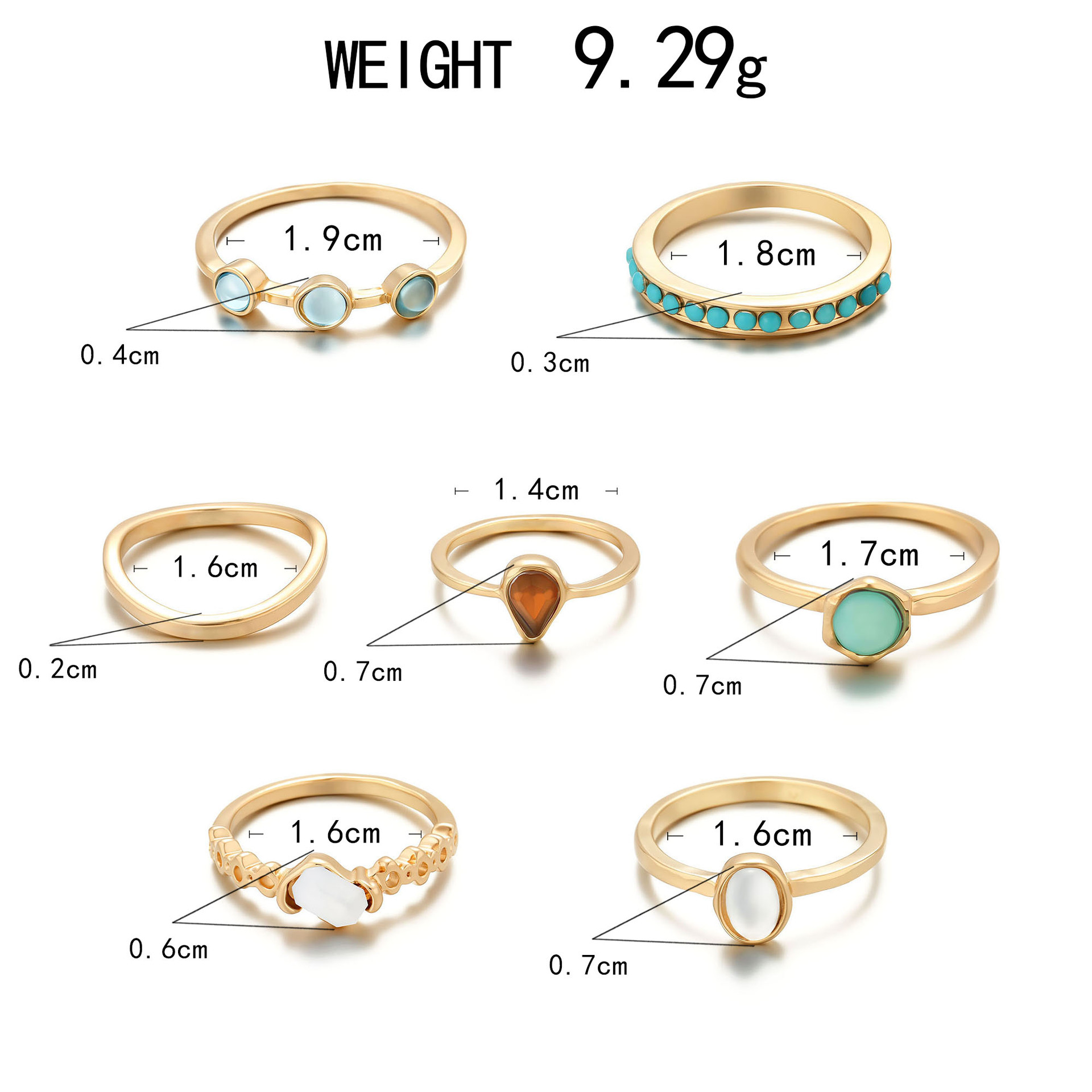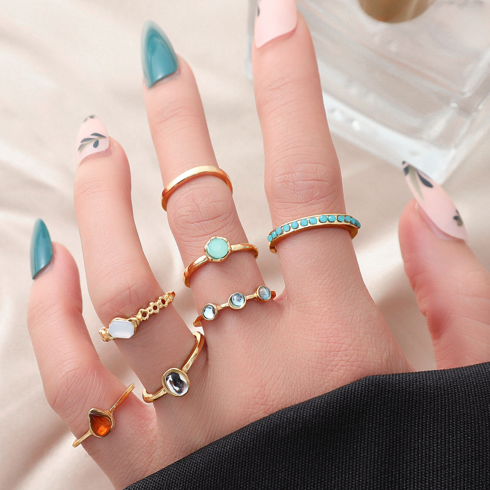 Zinc Alloy Ring Set, plated, 7 pieces & for woman & with rhinestone, golden, Sold By Set