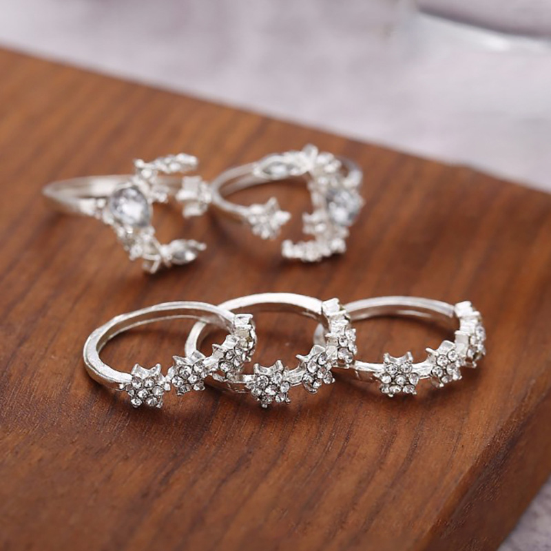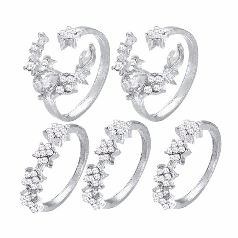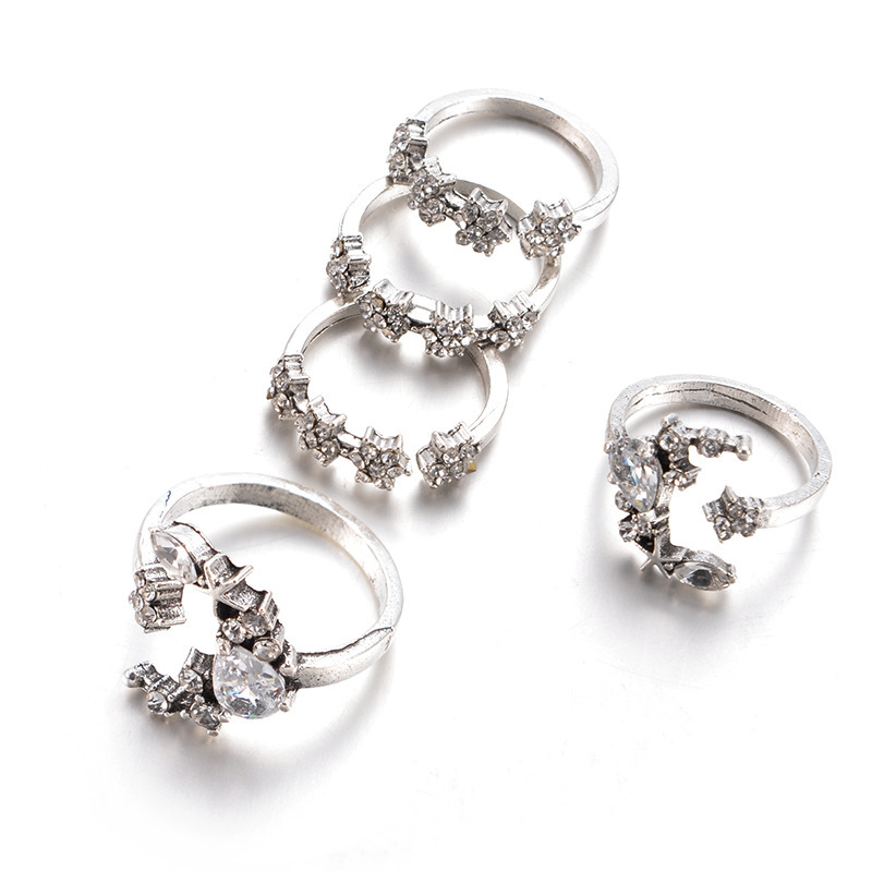 Zinc Alloy Ring Set, 5 pieces & for woman & with rhinestone, silver color, US Ring Size:7, Sold By Set