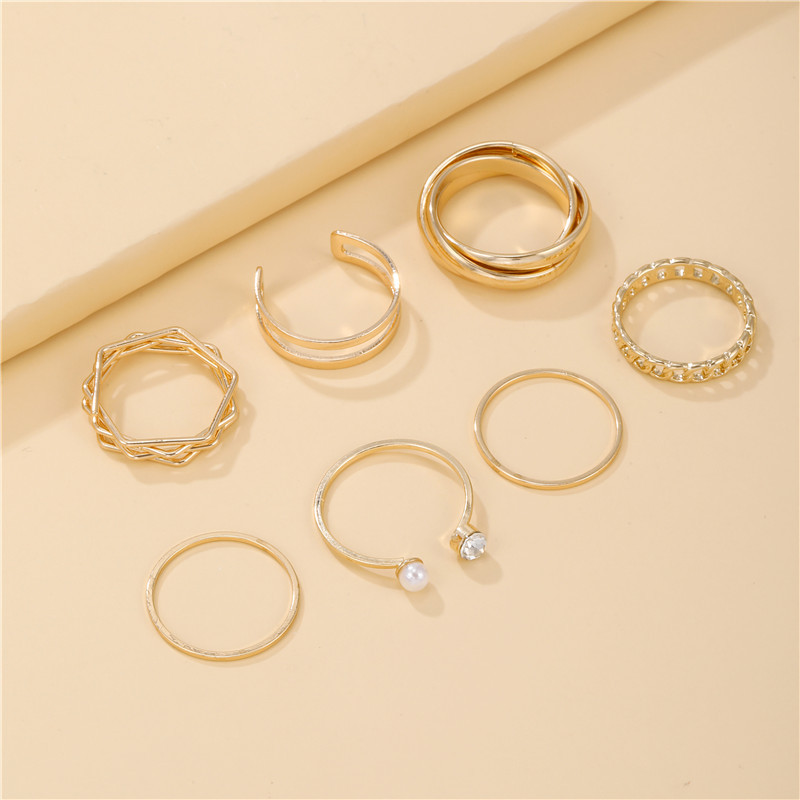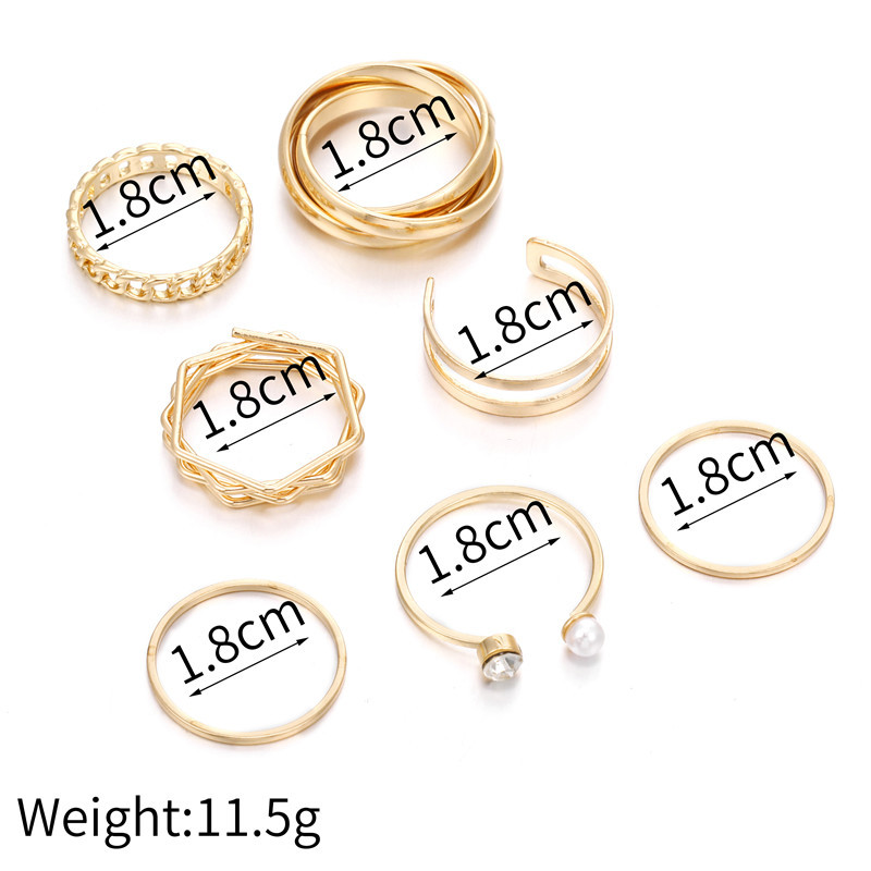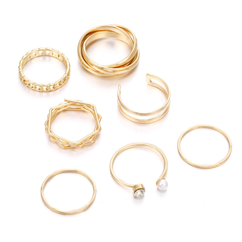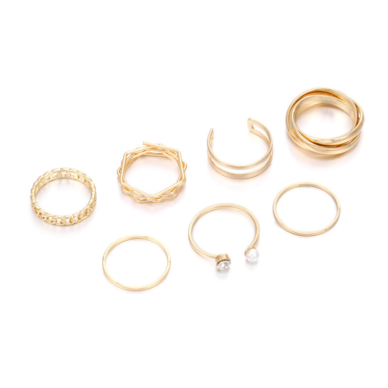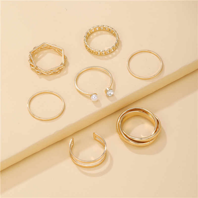 Zinc Alloy Ring Set, with Plastic Pearl, gold color plated, 7 pieces & for woman, US Ring Size:8, Sold By Set