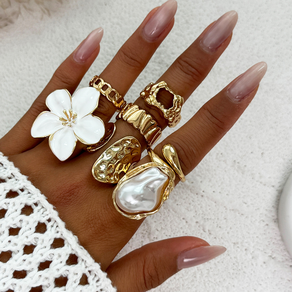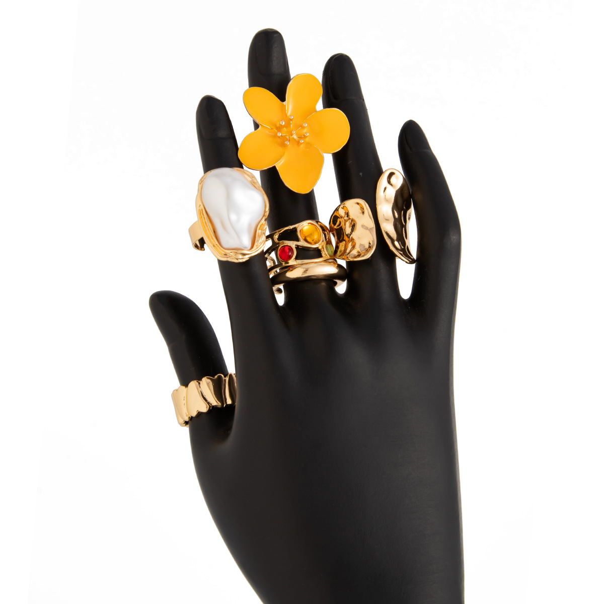Zinc Alloy Ring Set, with Plastic Pearl, gold color plated, fashion jewelry & micro pave cubic zirconia & enamel, more colors for choice, Sold By Set