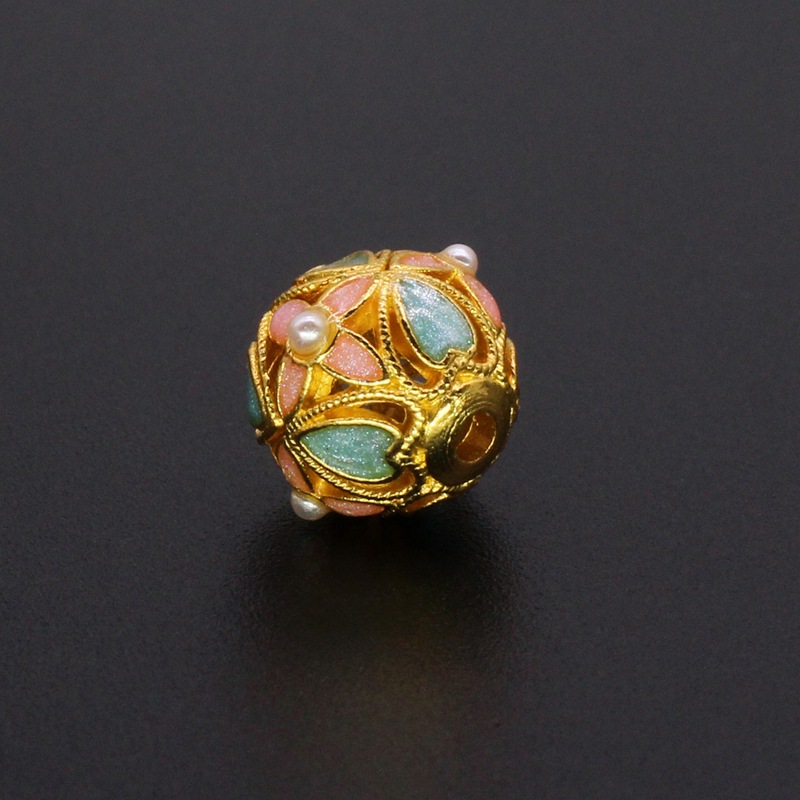 Zinc Alloy Spacer Beads, Round, matte gold color plated, DIY & with flower pattern & enamel 10mm Approx 1.8mm