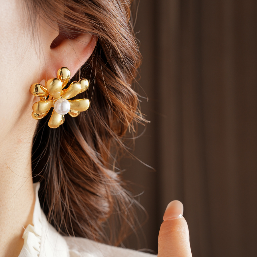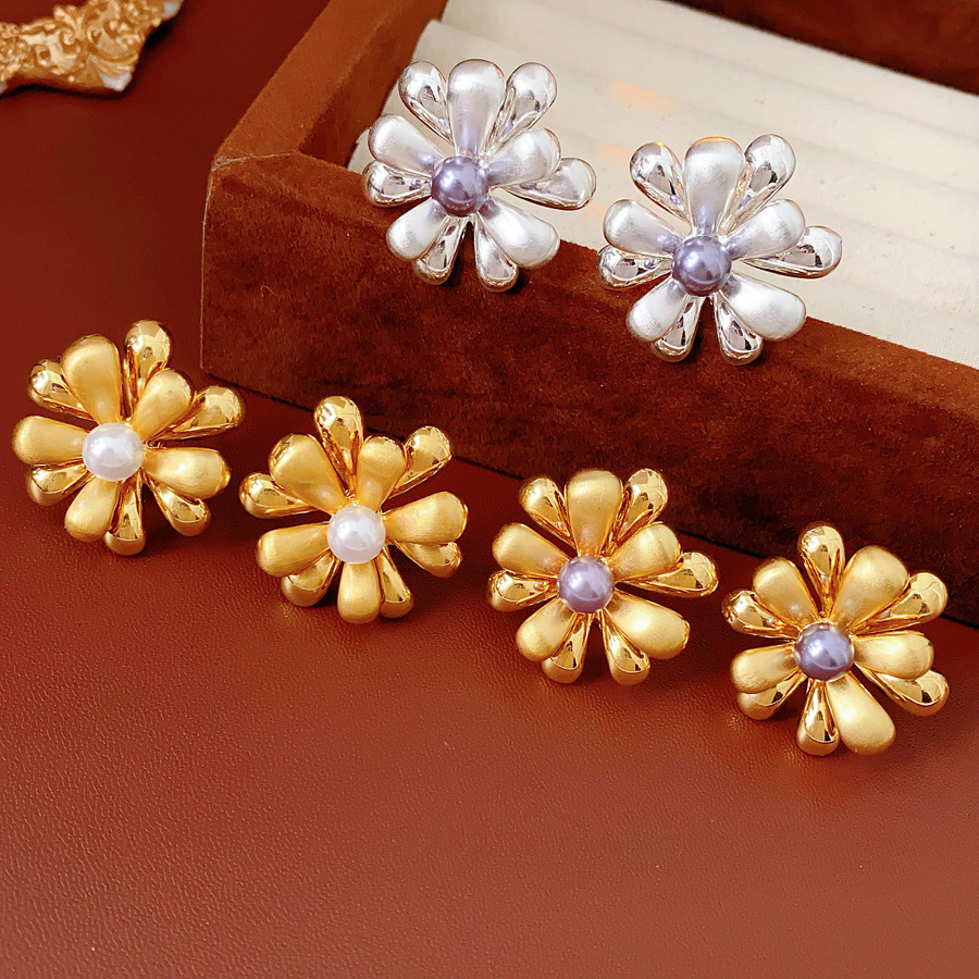 Zinc Alloy Stud Earring, with Plastic Pearl, Flower, plated, fashion jewelry & for woman, more colors for choice, Sold By Pair