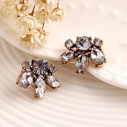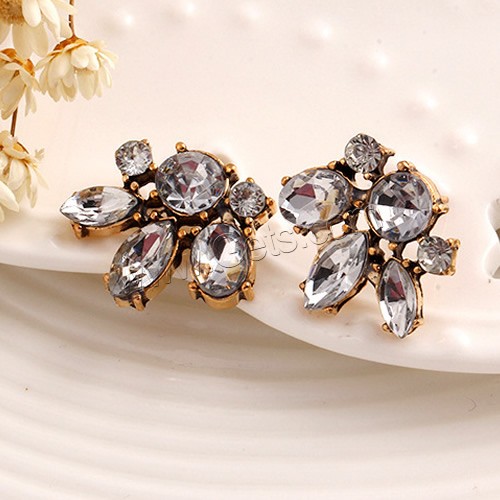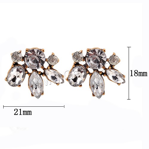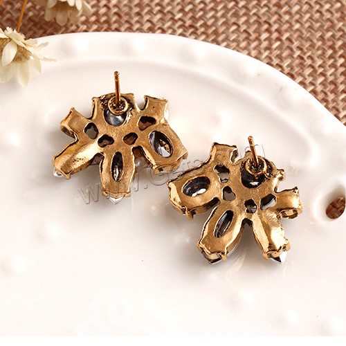 Zinc Alloy Stud Earring, with Resin Rhinestone, iron post pin, Leaf, antique gold color plated, Bohemian style & faceted, 21x18mm, Sold By Pair