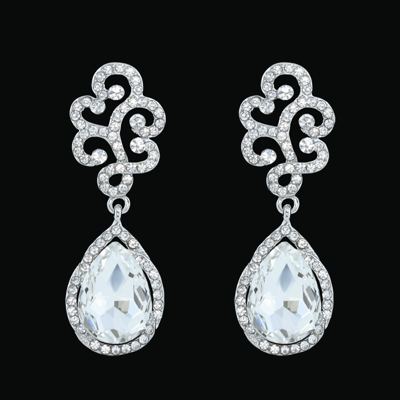 Crystal Drop Earring, Zinc Alloy, with Crystal, iron earring hook, platinum color plated, faceted, lead & cadmium free