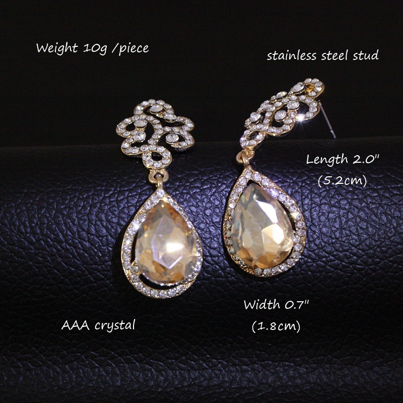 Crystal Drop Earring, Zinc Alloy, with Crystal, gold color plated, without earnut & with rhinestone, nickel, lead & cadmium free