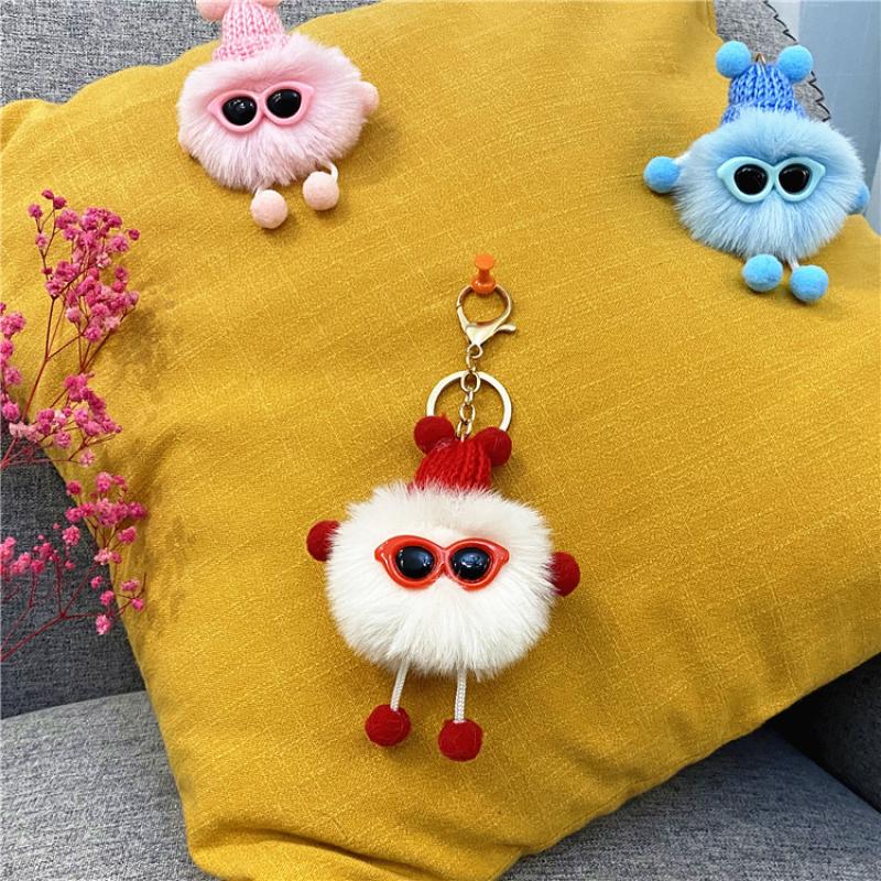 Fur Plush Key Chain, Zinc Alloy, with Polyester & Resin, multifunctional & Unisex, more colors for choice, 150x75mm, Sold By PC