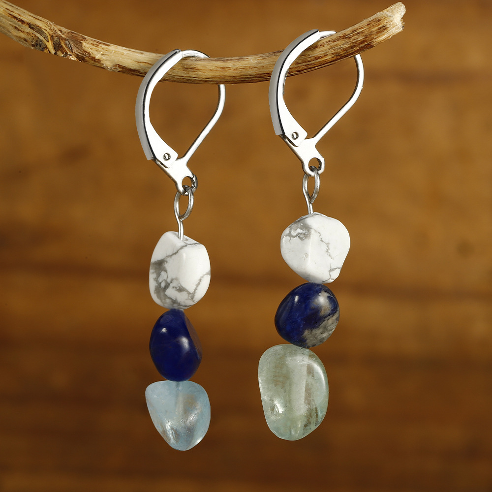 Нержавеющая сталь 304 Сережка, с Природный камень, ювелирные изделия моды & Женский, разноцветный, продается Пара