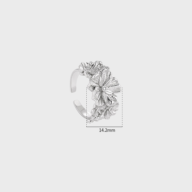 925 пробы Манжеты палец кольцо, Форма цветка, покрытый платиной, инкрустированное микро кубического циркония & Женский, размер:7.5, продается PC
