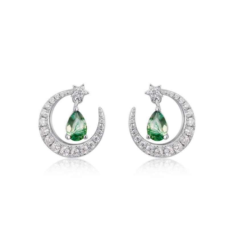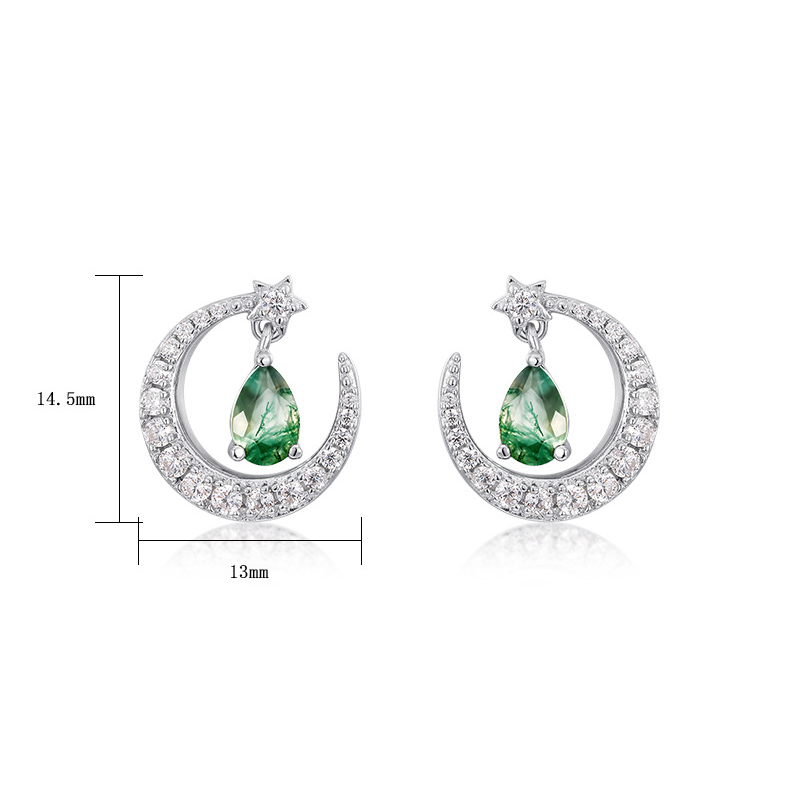 925 пробы Сережка, с Болотный агат, Луна, покрытый платиной, Женский & со стразами, 13x14.5mm, продается Пара