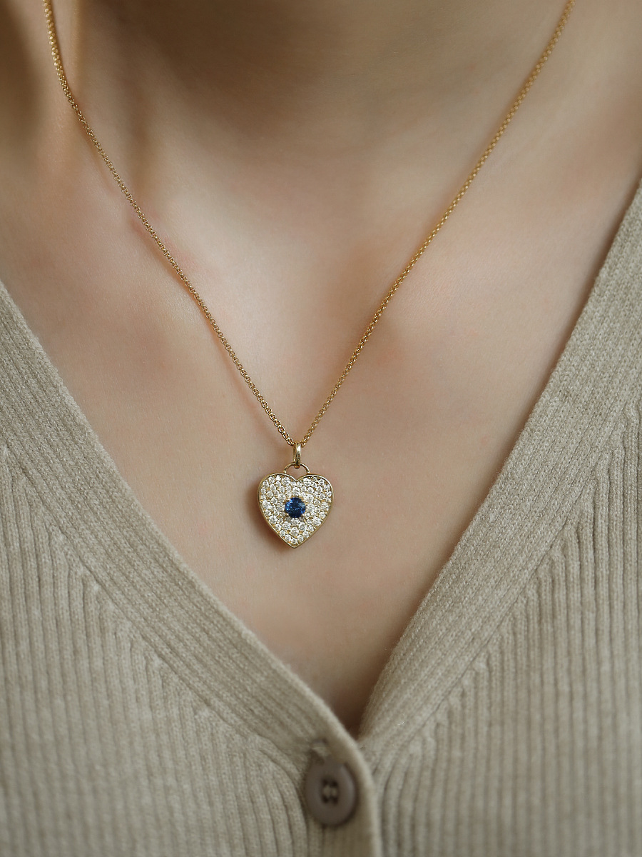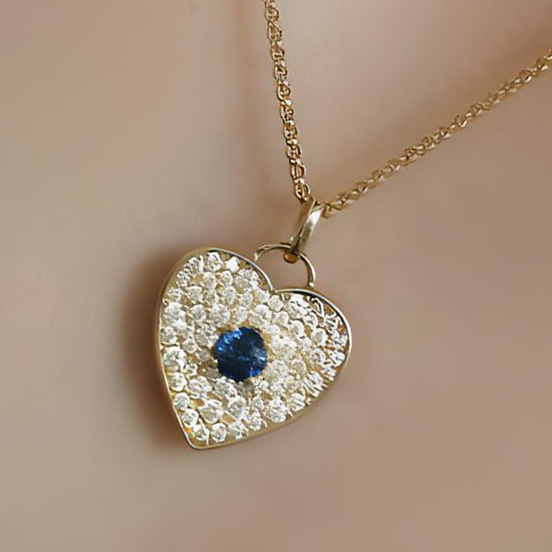 925 пробы Ожерелье, Сердце, плакирован золотом, инкрустированное микро кубического циркония & Женский, длина:Приблизительно 17.7 дюймовый, продается PC