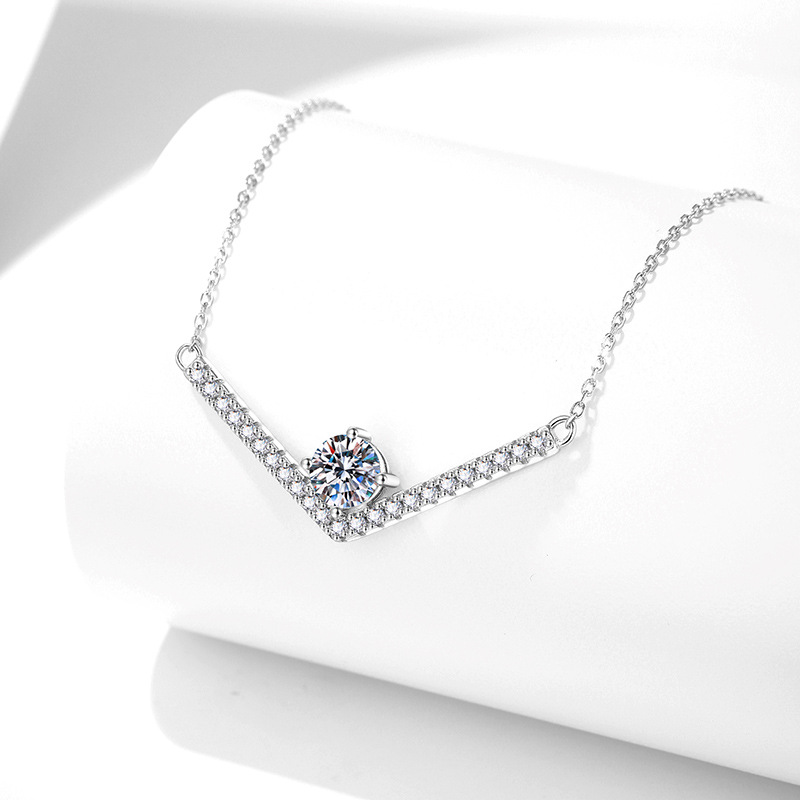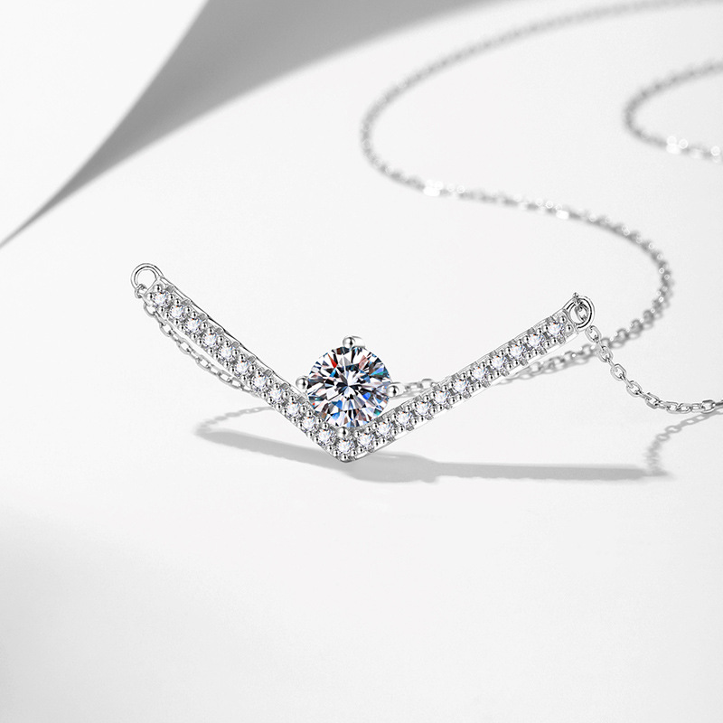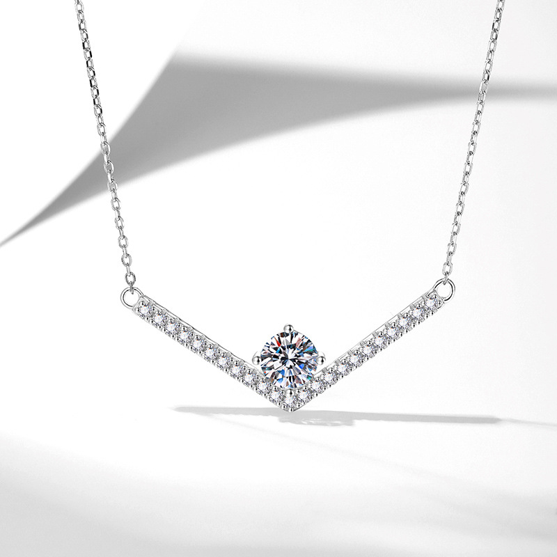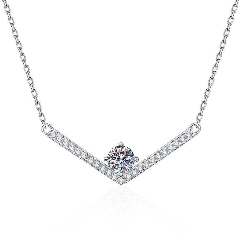 925 пробы Ожерелье, с 2inch наполнитель цепи, Буква V, покрытый платиной, различные материалы для выбора & инкрустированное микро кубического циркония & Женский, длина:Приблизительно 15.7 дюймовый, продается PC