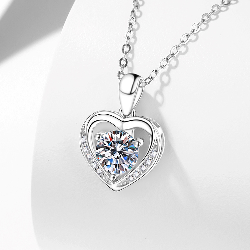 925 пробы Ожерелье, с 2inch наполнитель цепи, Сердце, покрытый платиной, различные материалы для выбора & инкрустированное микро кубического циркония & Женский, длина:Приблизительно 15.7 дюймовый, продается PC
