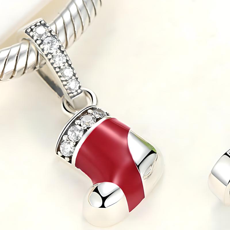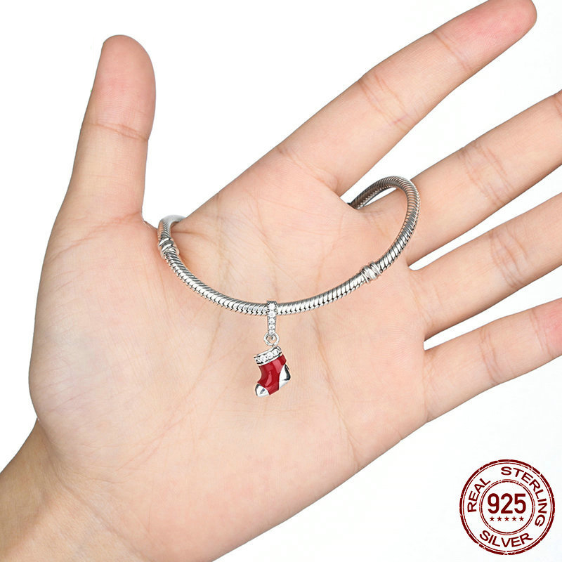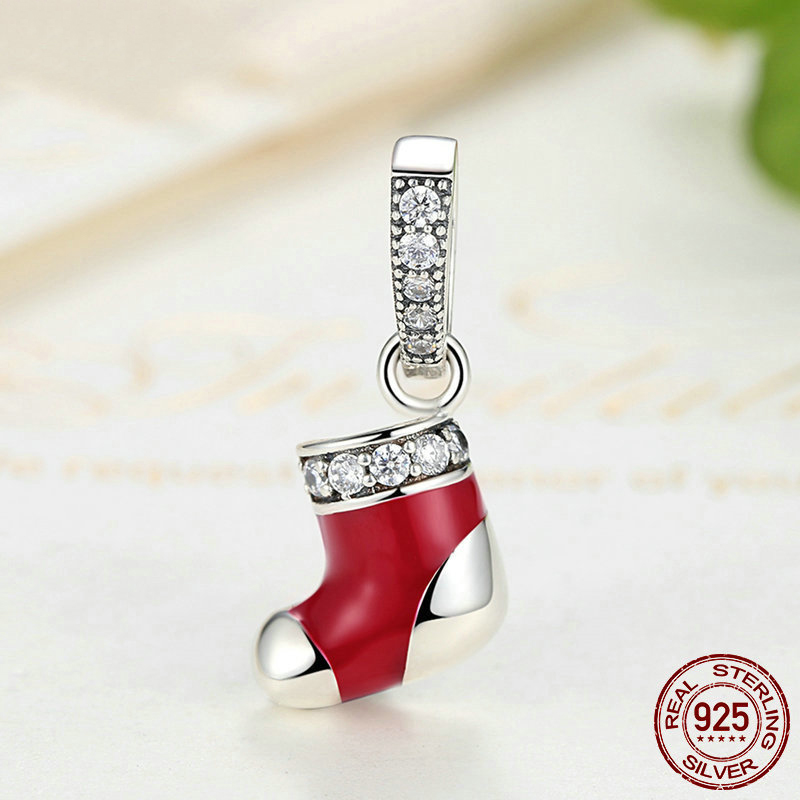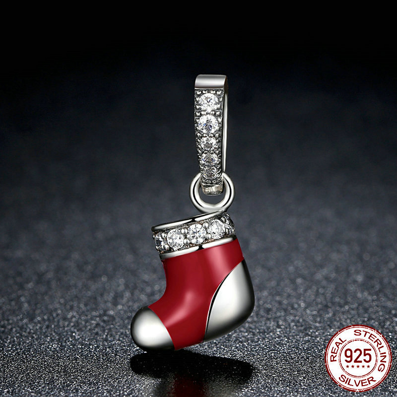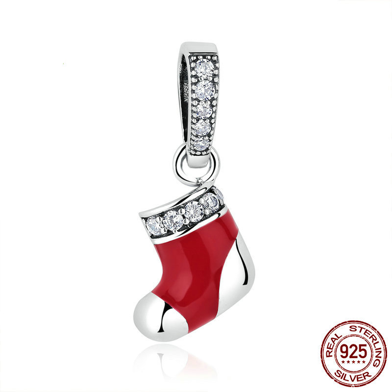 925 пробы подвеска, Рождественский носок, DIY & инкрустированное микро кубического циркония & эмаль, pendant length 10-20mm, продается PC
