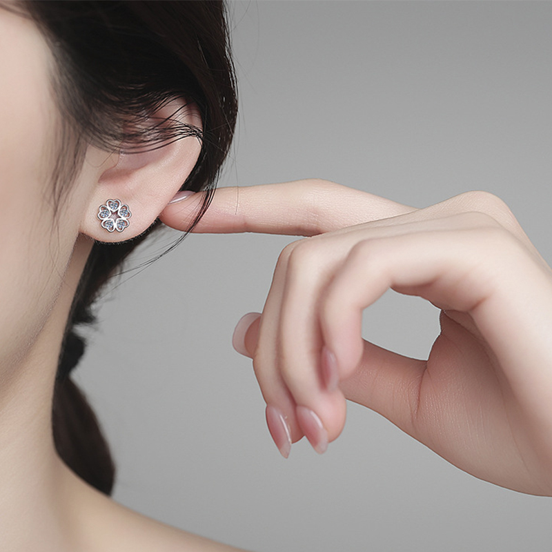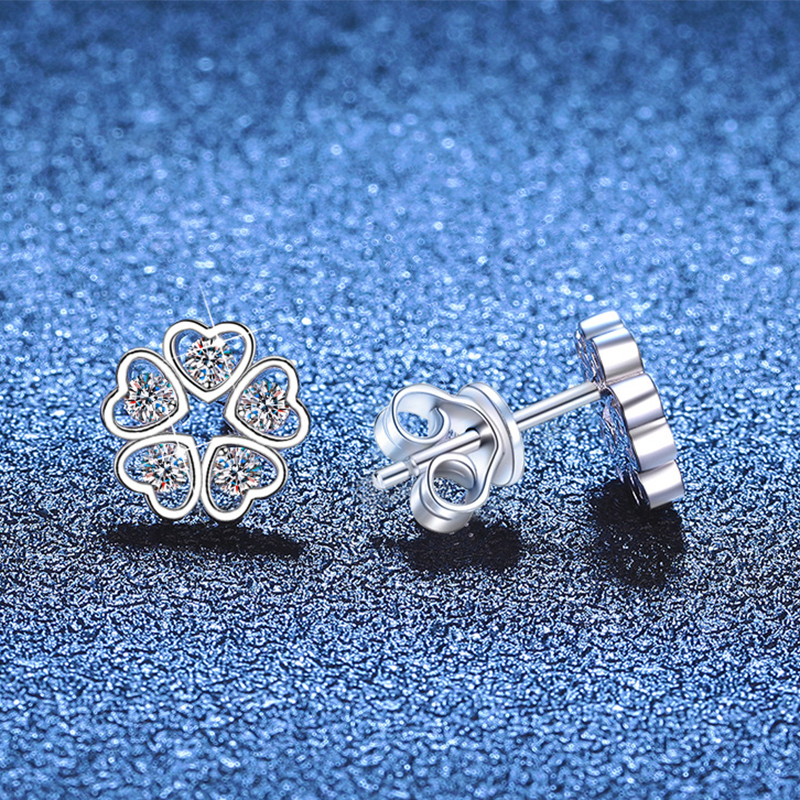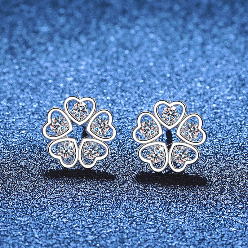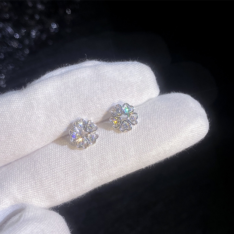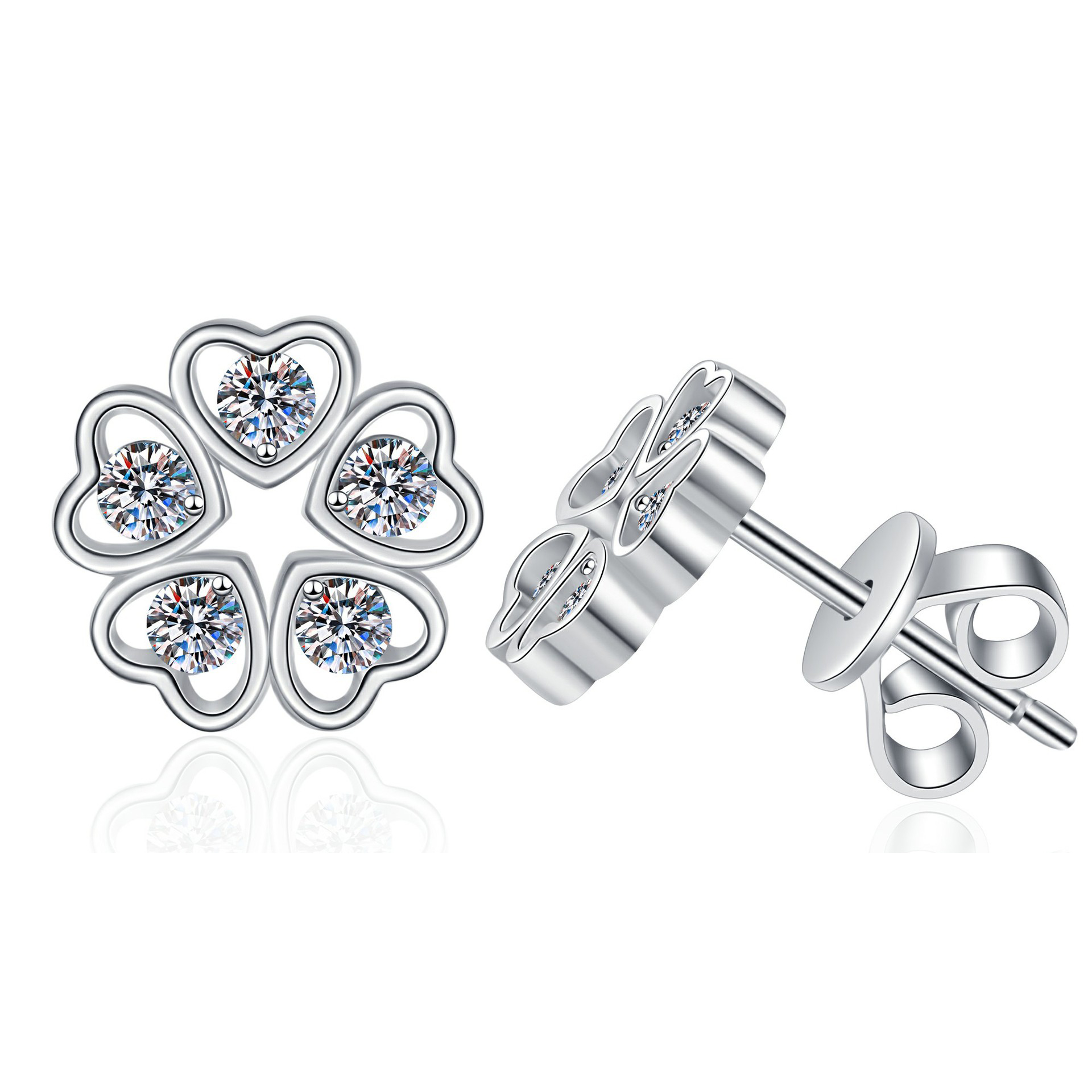 925 пробы Сережка-гвоздик, с Муассанит, Форма цветка, покрытый платиной, Женский & отверстие, продается Пара