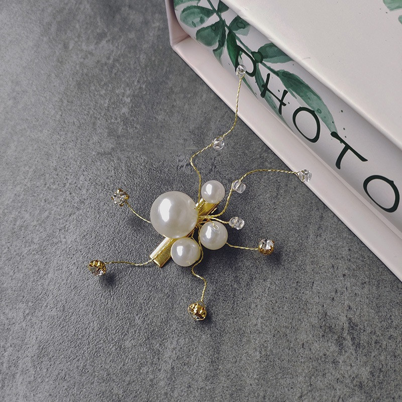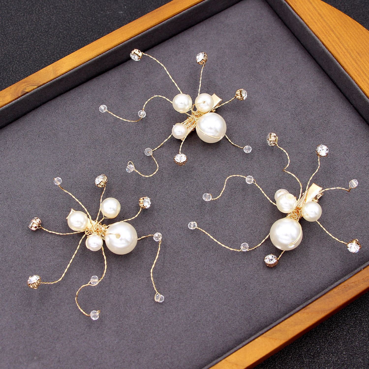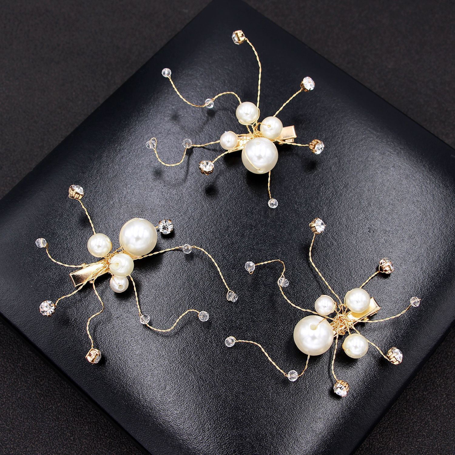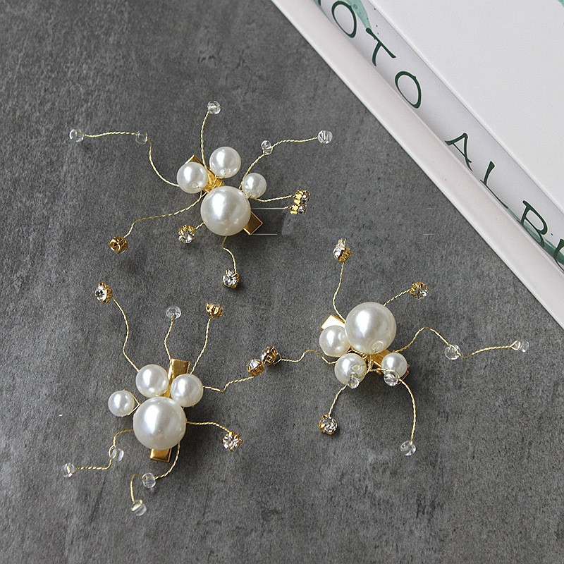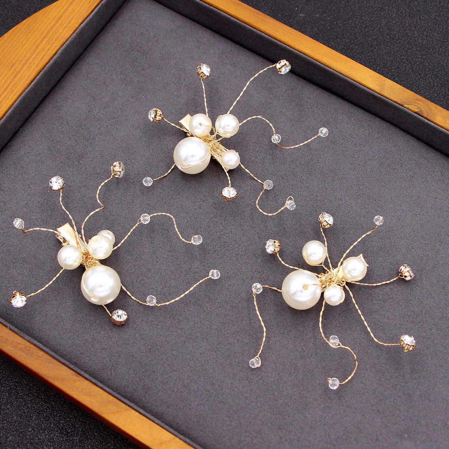 Заколки-Клюв, цинковый сплав, с Медная проволока & Кристаллы & Пластиковая жемчужина, Связанный вручную, три части & ювелирные изделия моды & Женский, Золотой, 25x25x75mm, продается указан