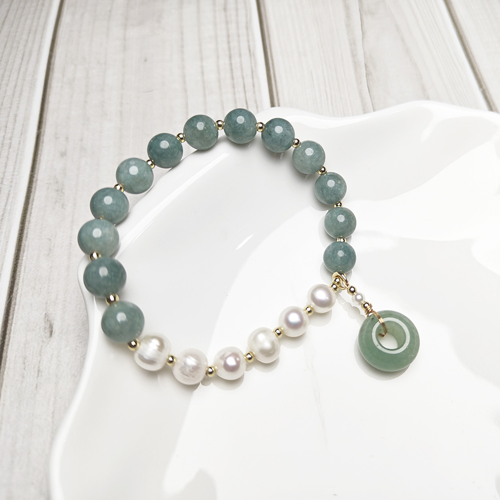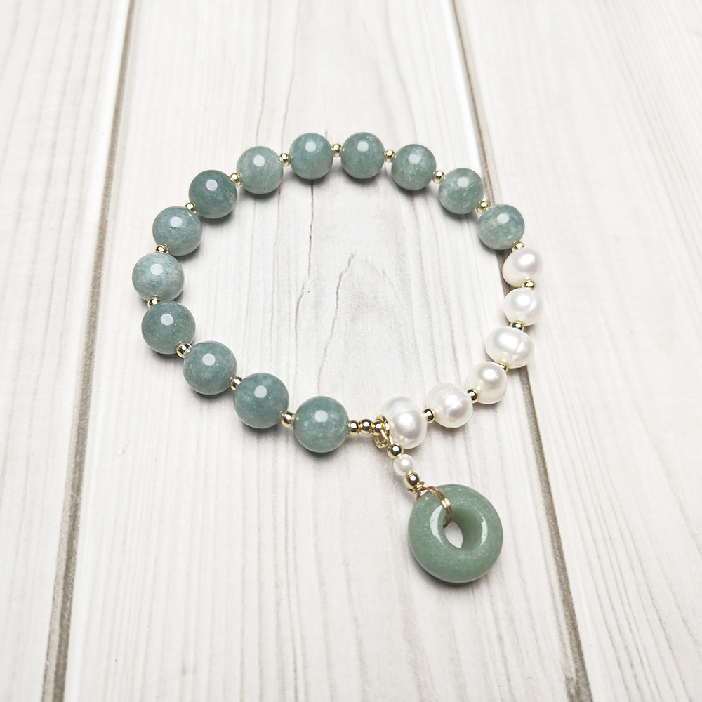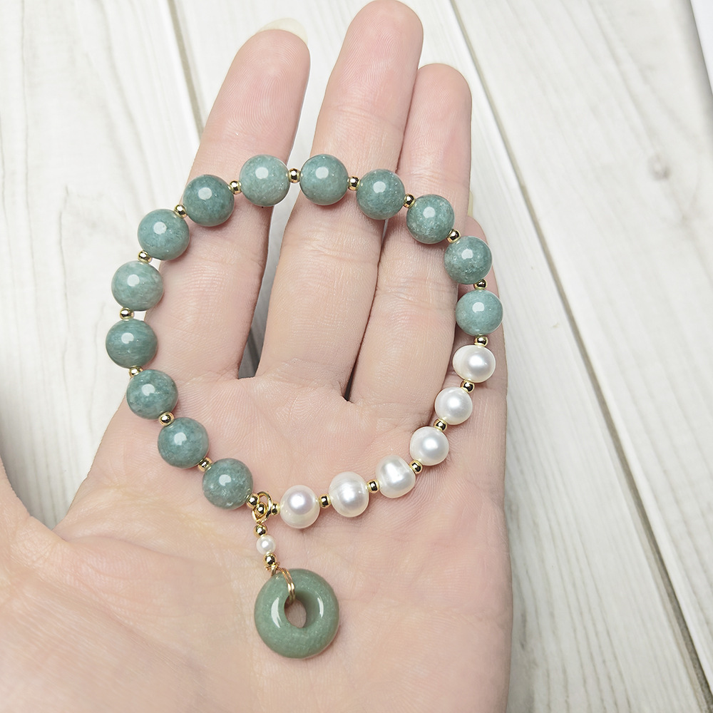 Браслет из авантюрина, Зеленый авантюрин, с Пластиковая жемчужина & Нержавеющая сталь 304, ювелирные изделия моды, разноцветный, 8mm, длина:21 см, продается PC