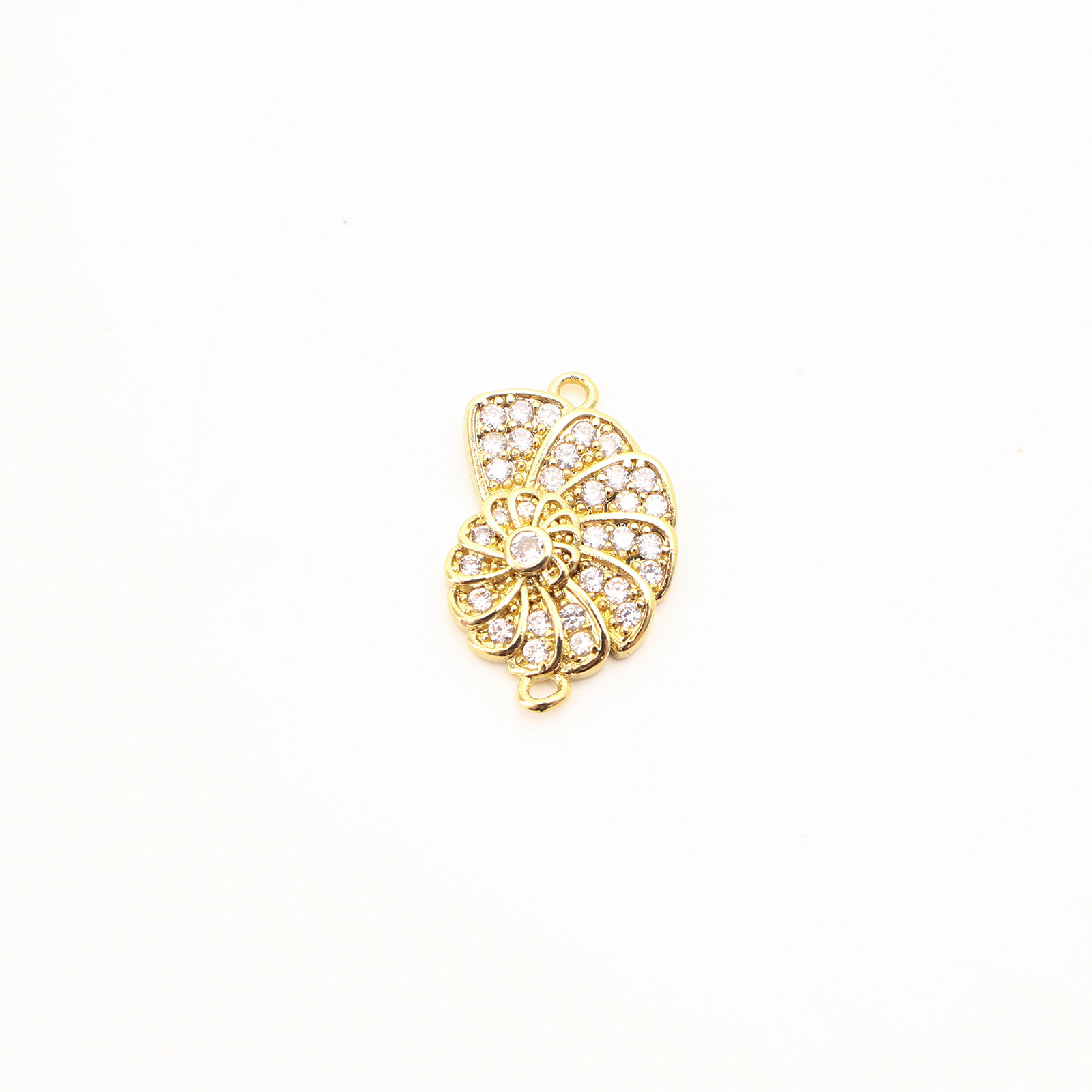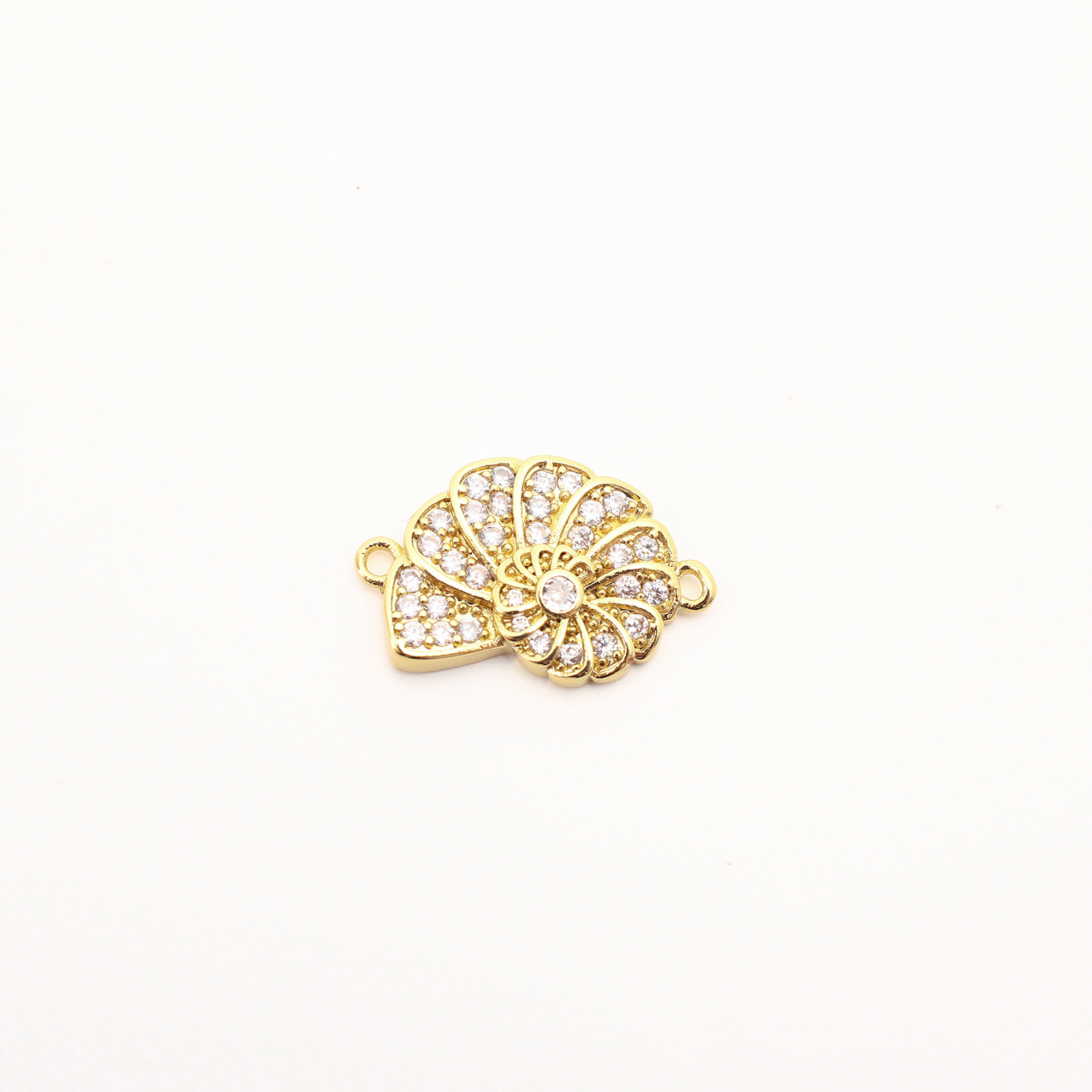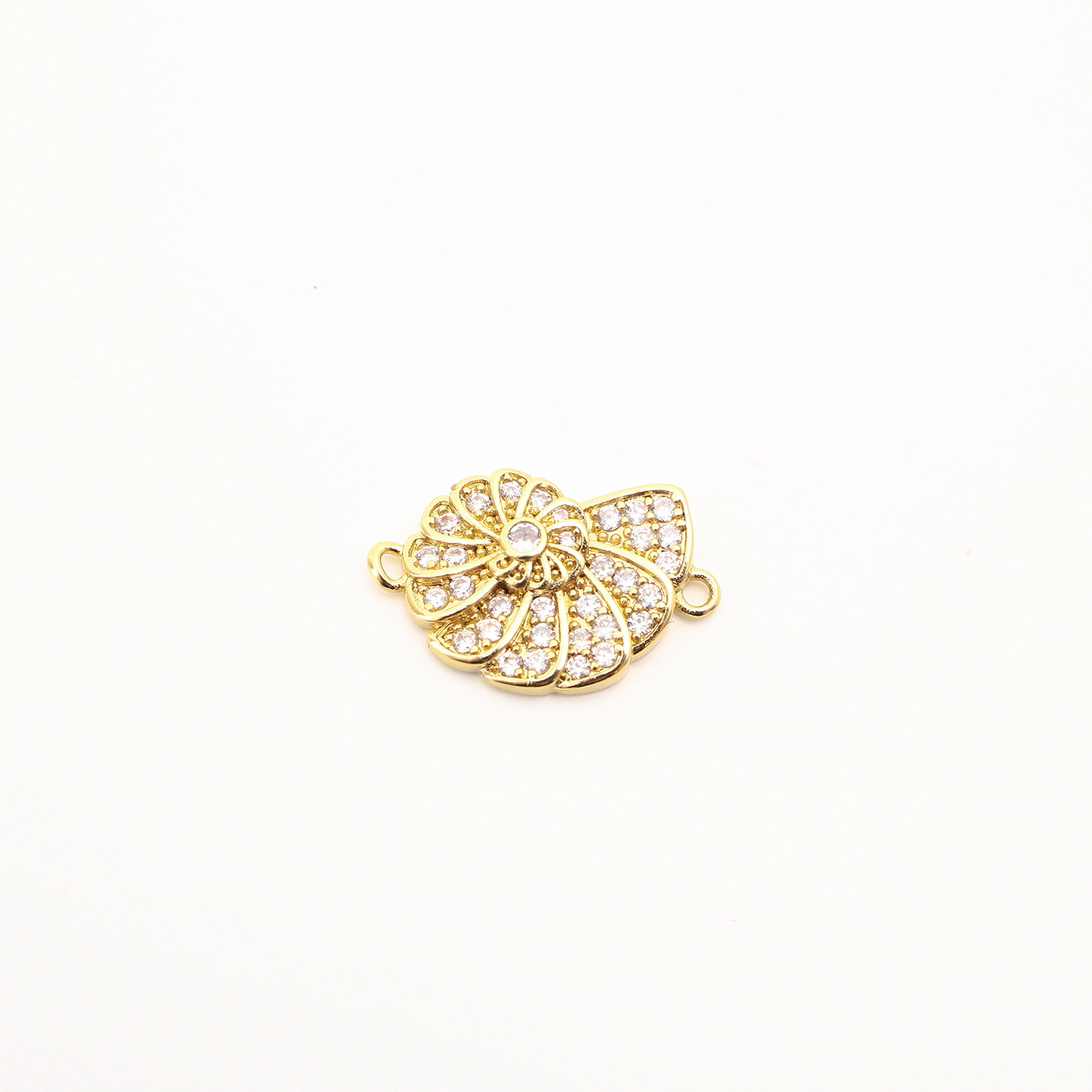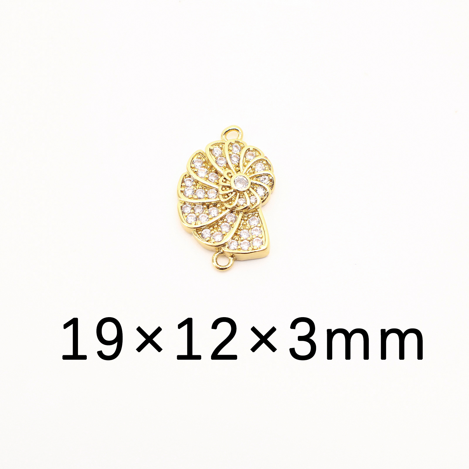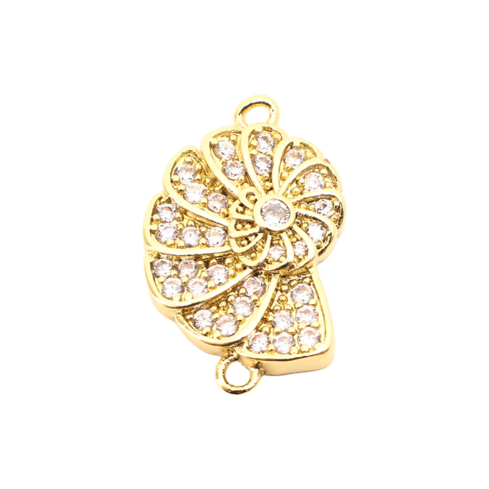 Латунь коннектор, Ракушка, DIY & инкрустированное микро кубического циркония, Золотой, 19x12x3mm, продается PC