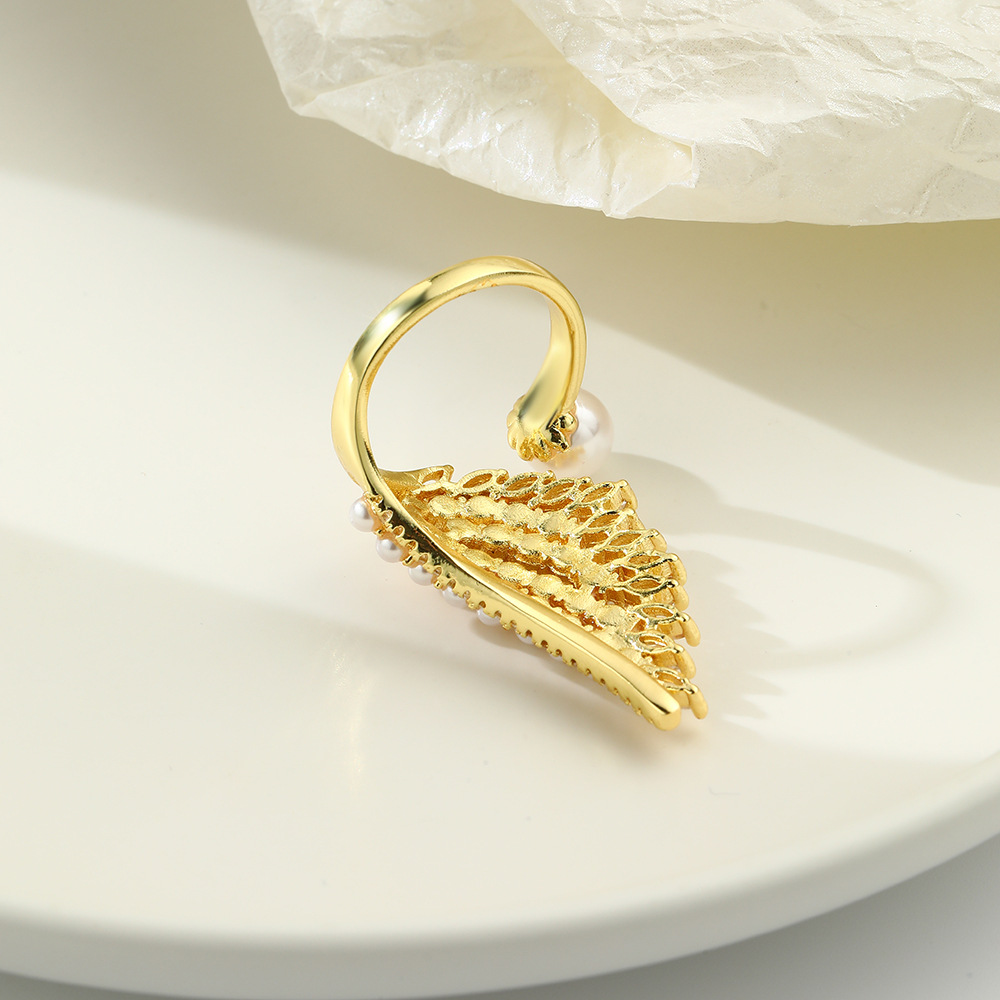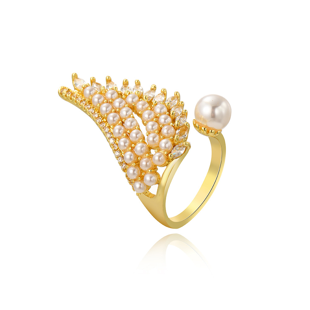 Латунь Манжеты палец кольцо, с Пластиковая жемчужина, Форма крыла, плакирован золотом, инкрустированное микро кубического циркония & Женский, размер:8, продается PC