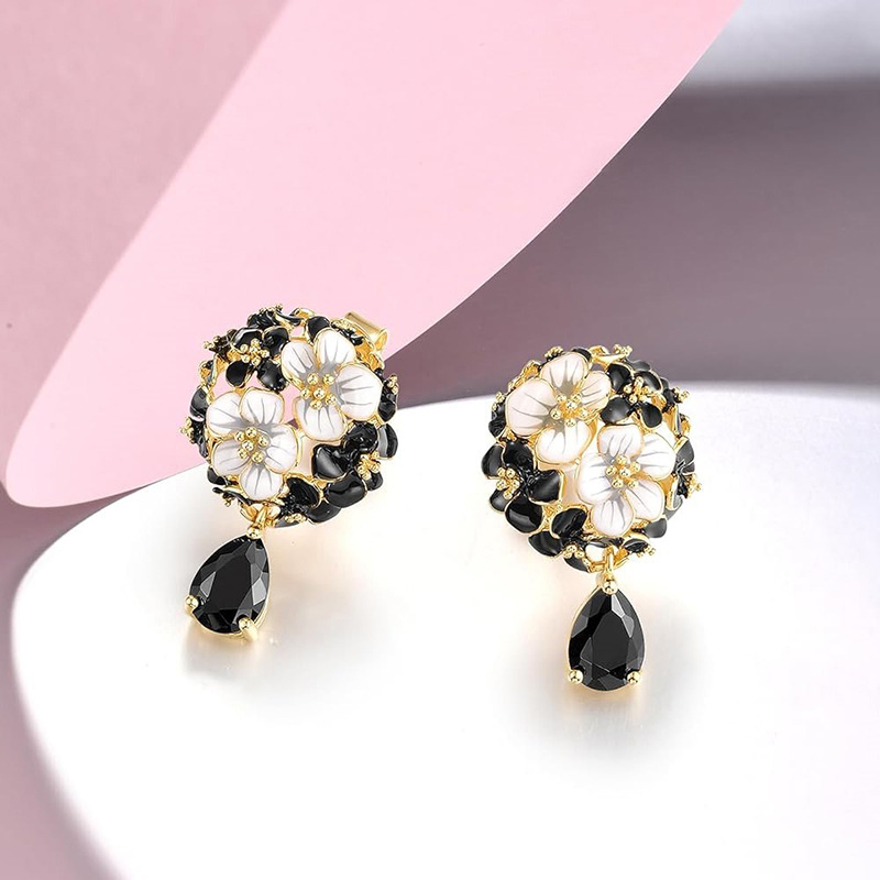 Латунные серьги падение, Латунь, с стеклянная дрель, Другое покрытие, Женский & эмаль & отверстие, продается Пара