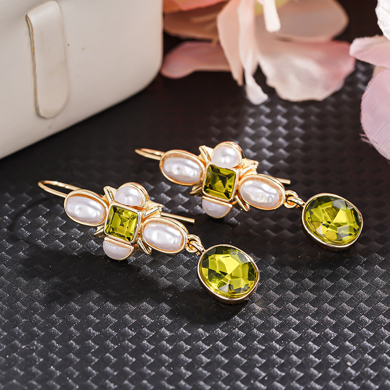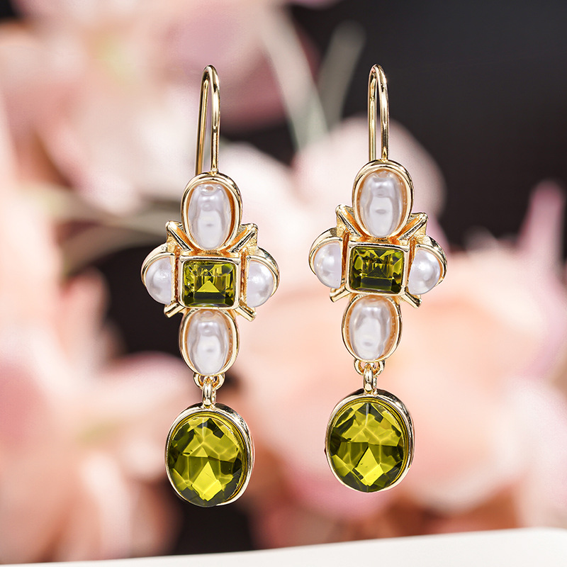 Латунные серьги падение, Латунь, с Стеклянный & Пластиковая жемчужина, Другое покрытие, ювелирные изделия моды & Женский, продается Пара