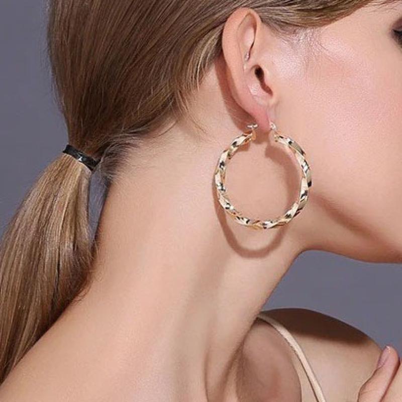 Латунь обруч серьги, 18K позолоченный, ювелирные изделия моды & Женский, продается Пара