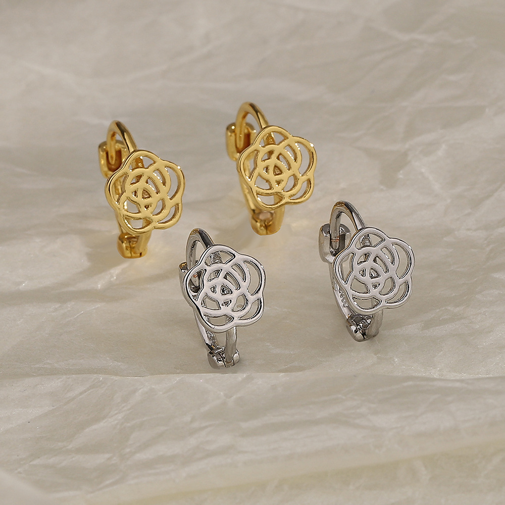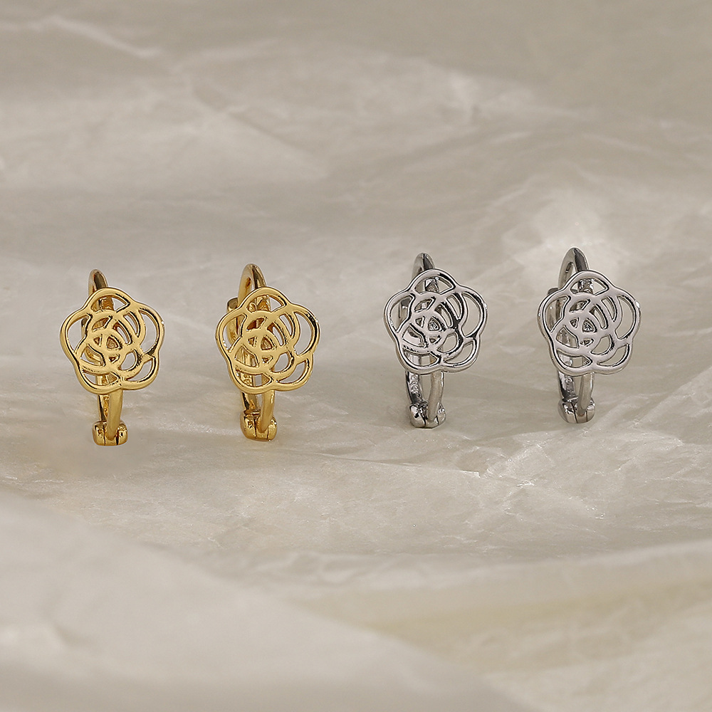 Латунь английском замке Хооп серьги, Лепестки, Другое покрытие, Женский, Много цветов для выбора, Flowers about 7mm, diameter 10mm, продается PC