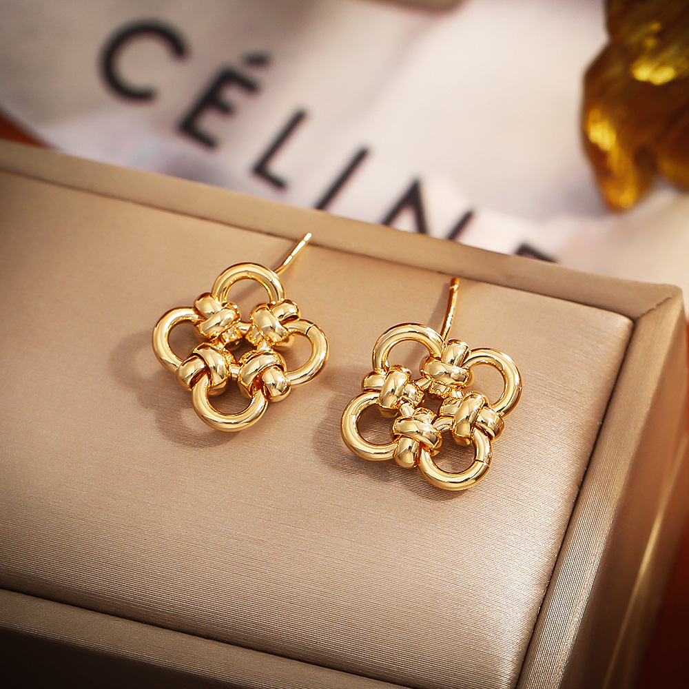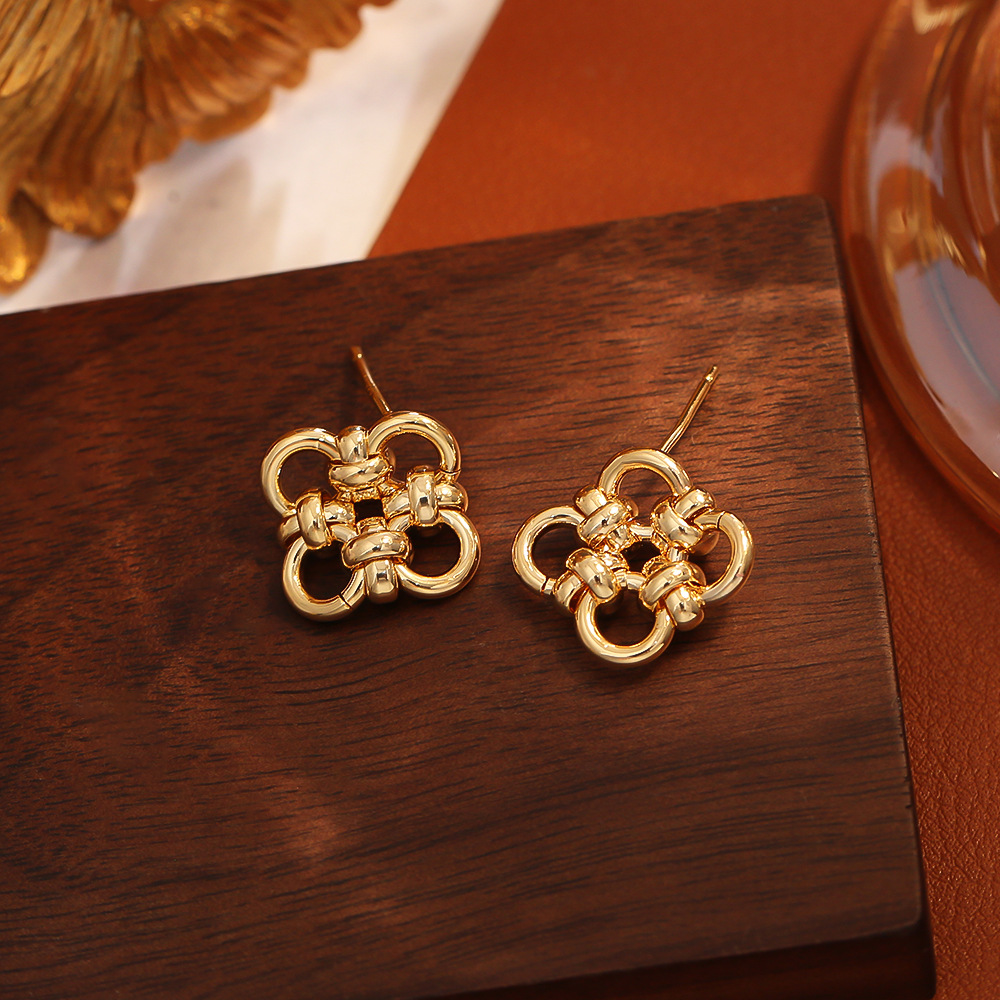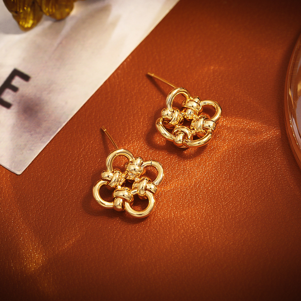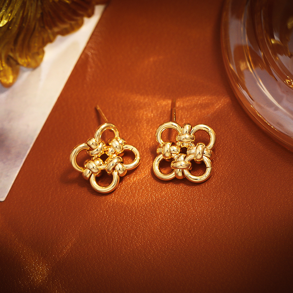Латуни Стад Серьги, Латунь, Китайский узел, плакированный настоящим золотом, ювелирные изделия моды & Женский & отверстие, продается Пара