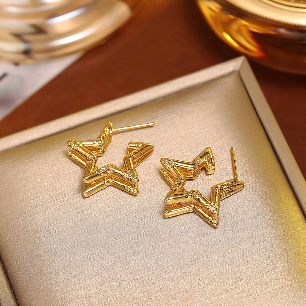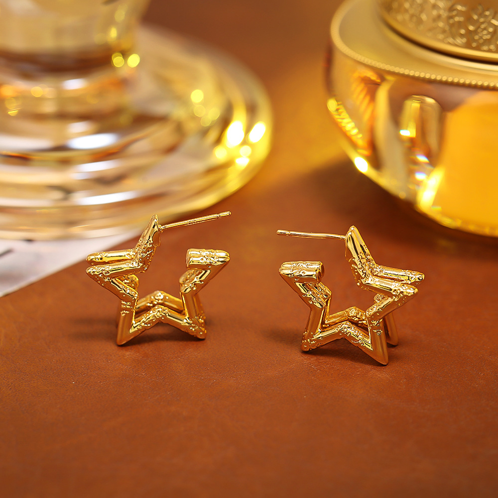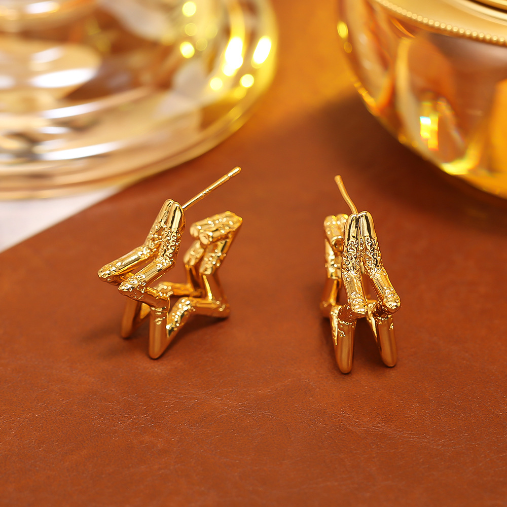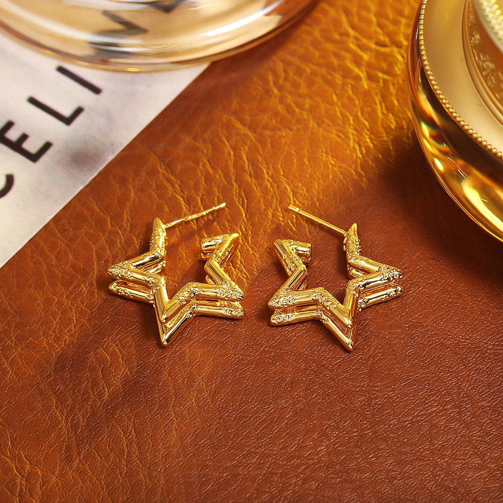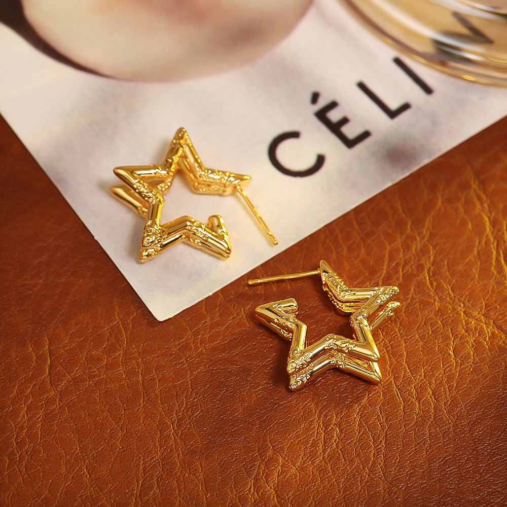 Латуни Стад Серьги, Латунь, Звезда, плакированный настоящим золотом, ювелирные изделия моды & Женский, продается Пара