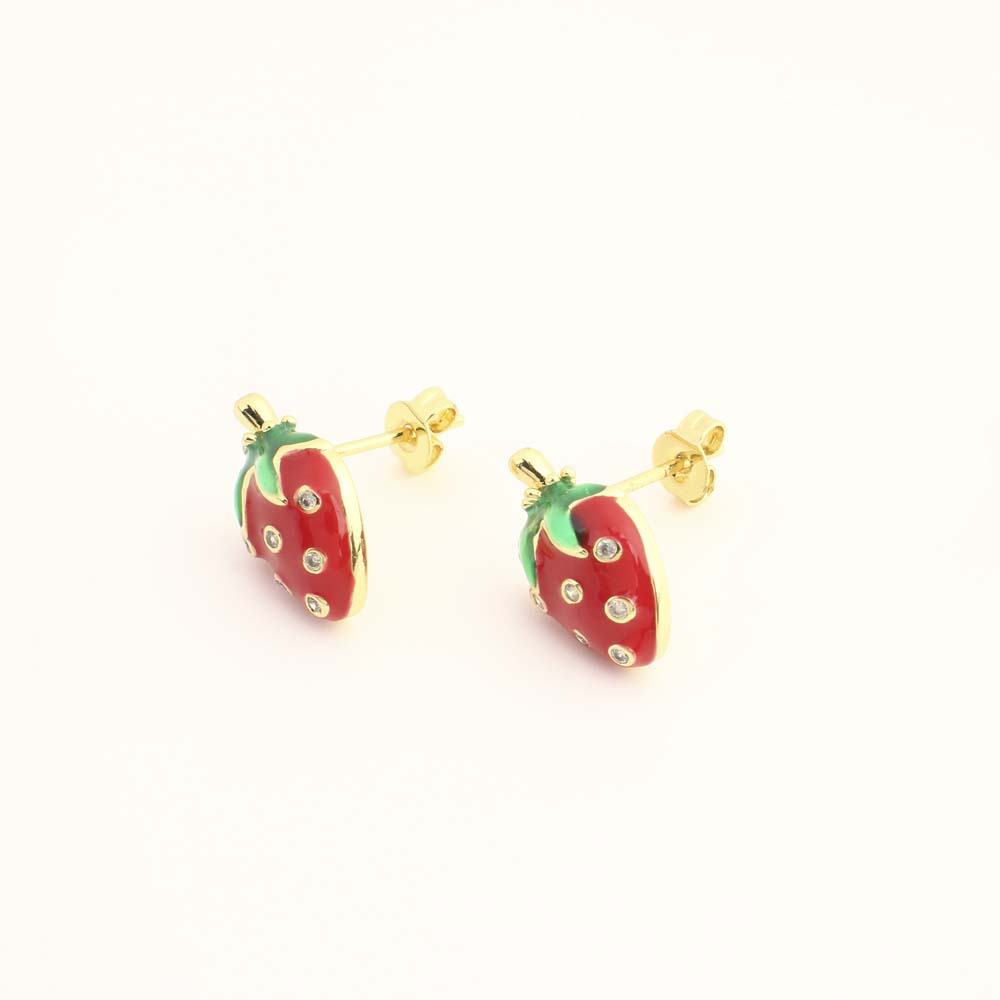 Латуни Стад Серьги, Латунь, ювелирные изделия моды & инкрустированное микро кубического циркония & Женский & эмаль, Золотой, продается Пара