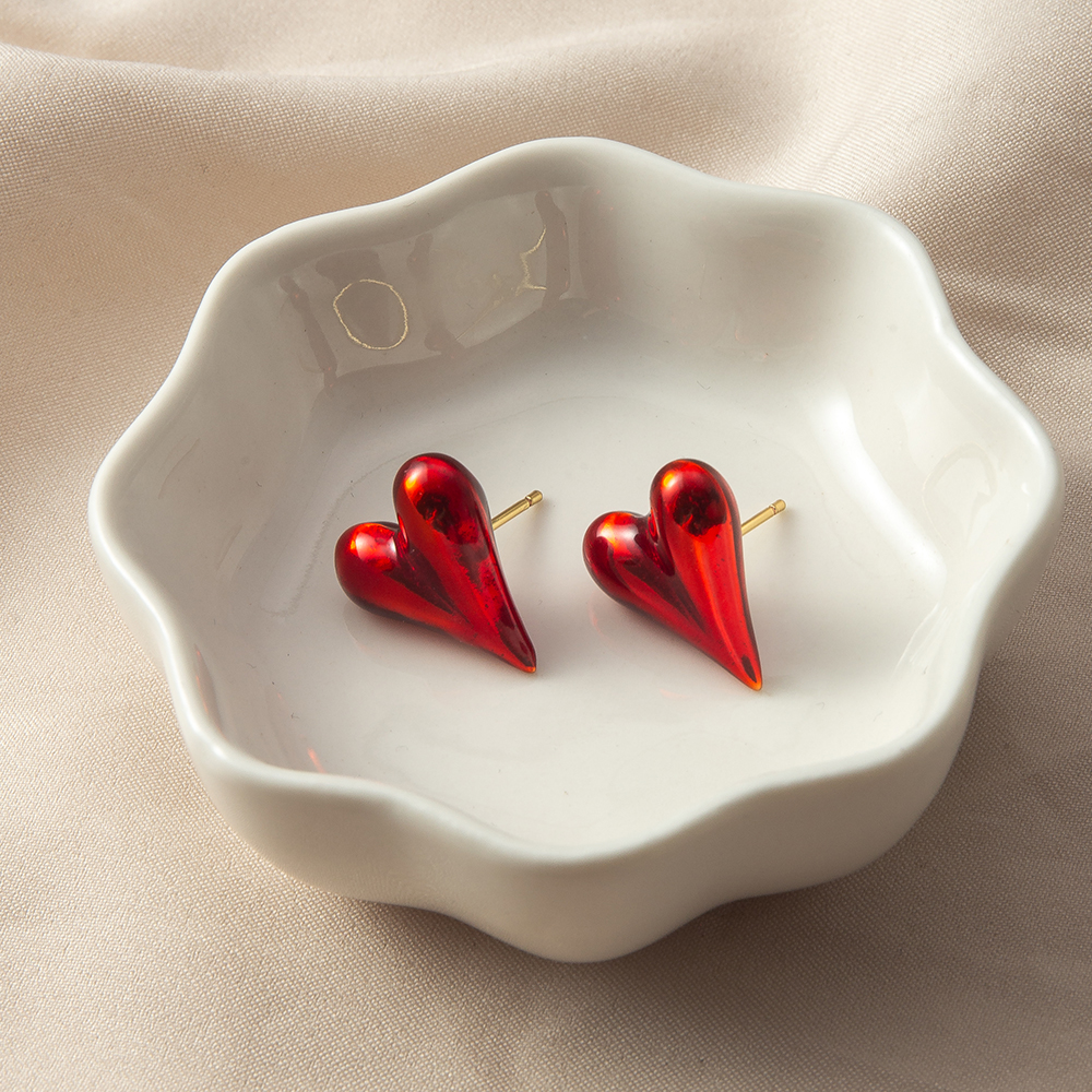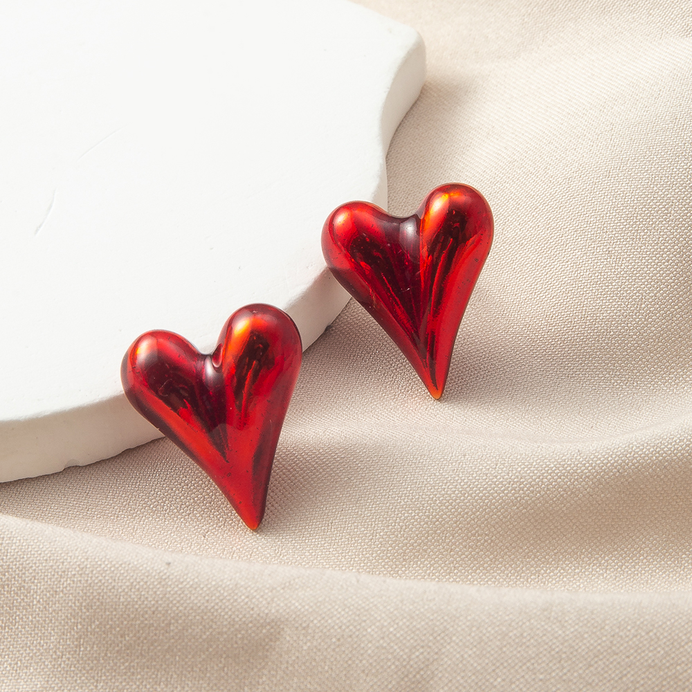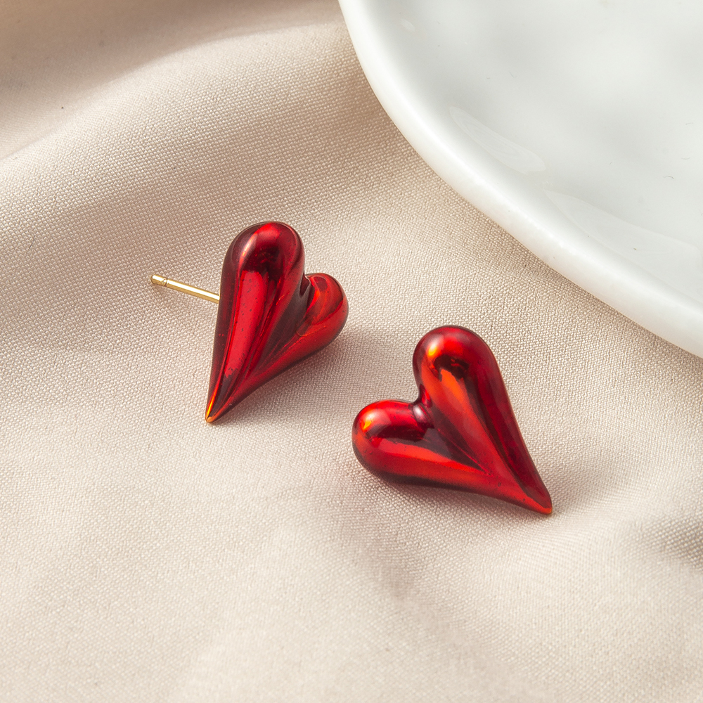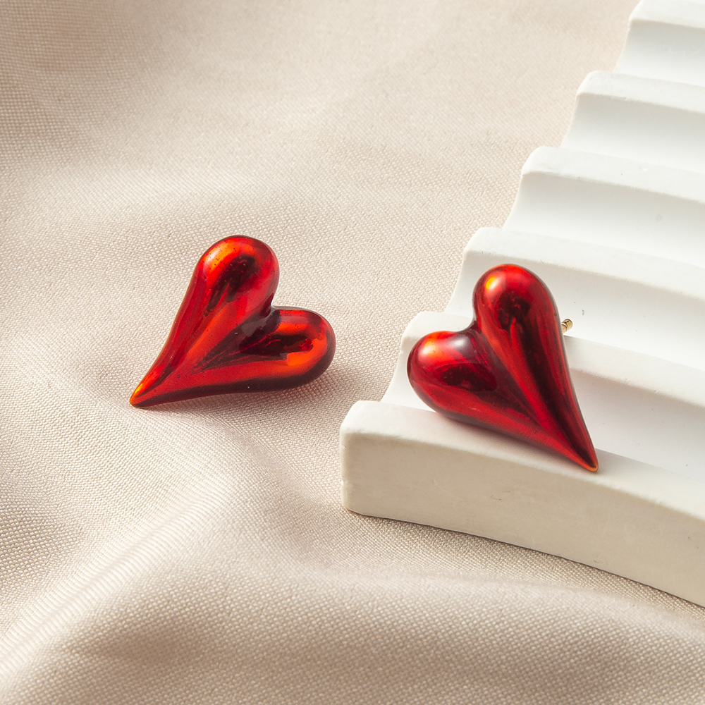 Латуни Стад Серьги, Латунь, Сердце, Другое покрытие, ювелирные изделия моды & эмаль, красный, не содержит никель, свинец, 15.6x17.3x18.2mm, продается Пара