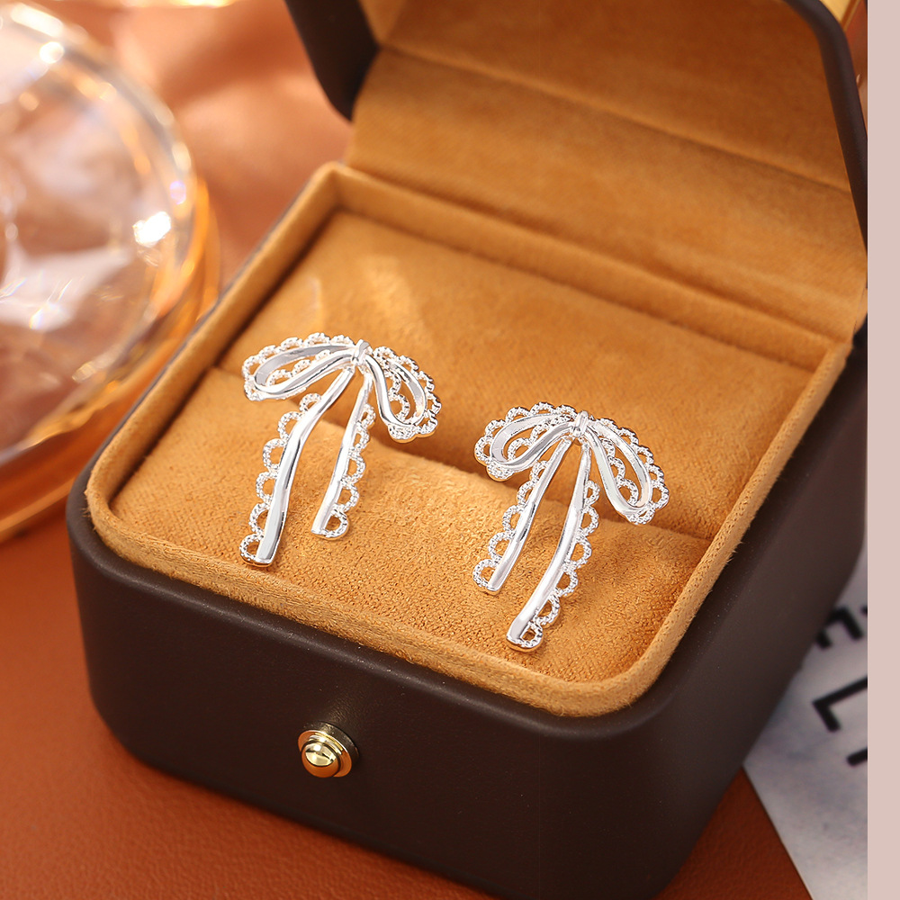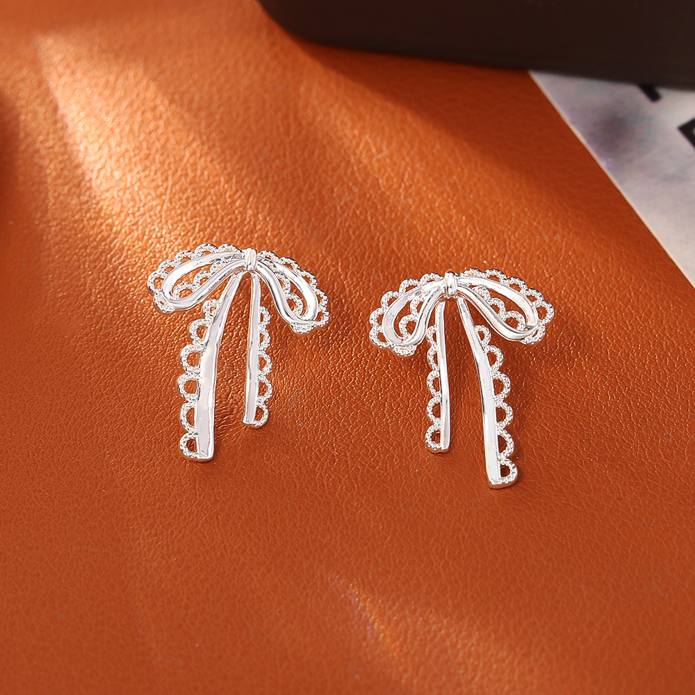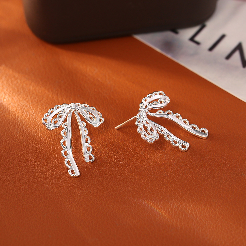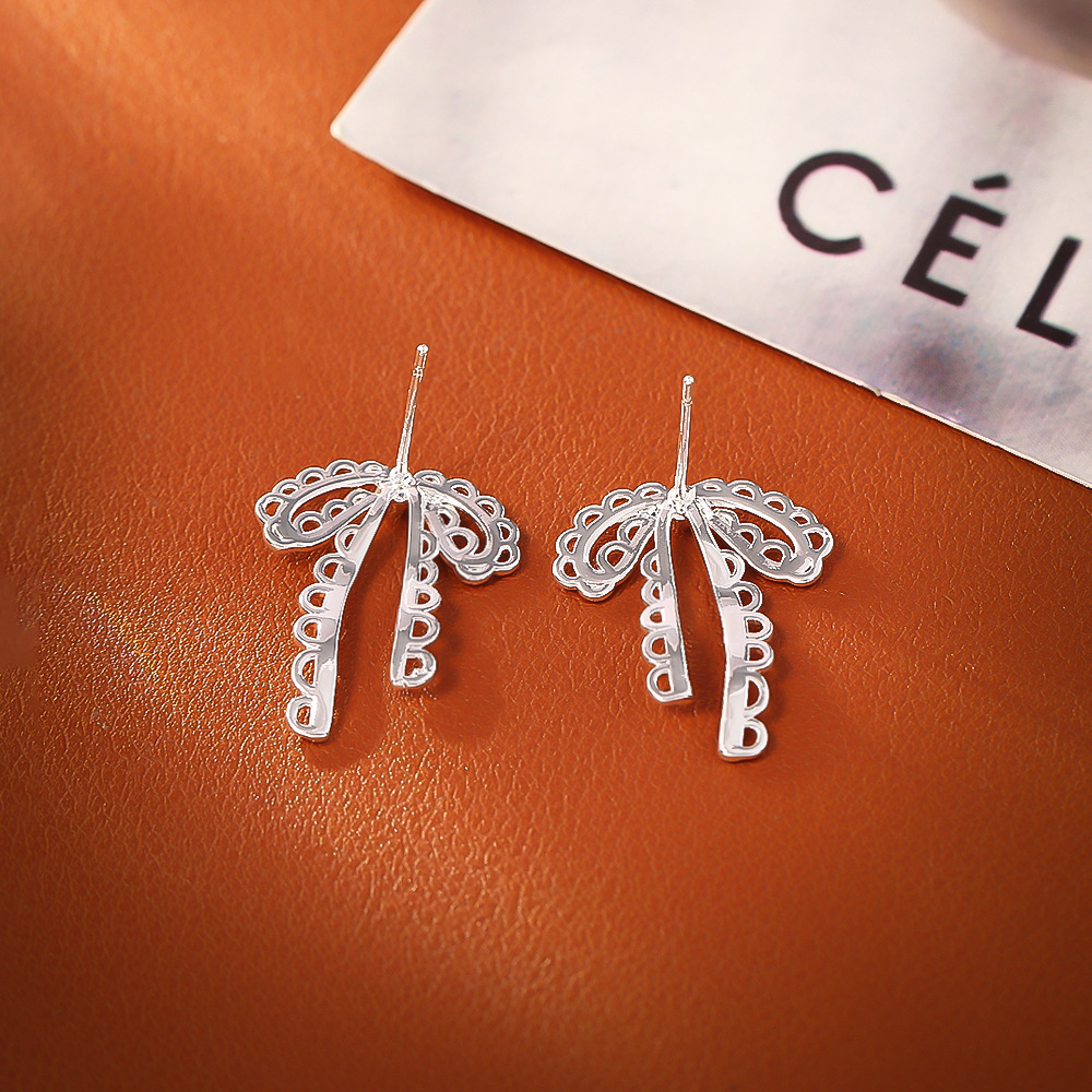 Латуни Стад Серьги, Латунь, Бантик, Другое покрытие, ювелирные изделия моды & Женский & отверстие, серебряный, продается Пара