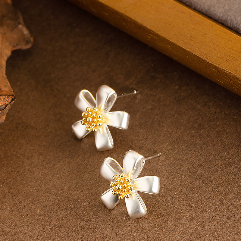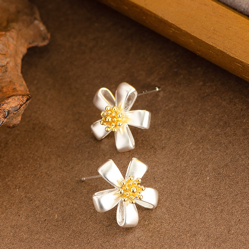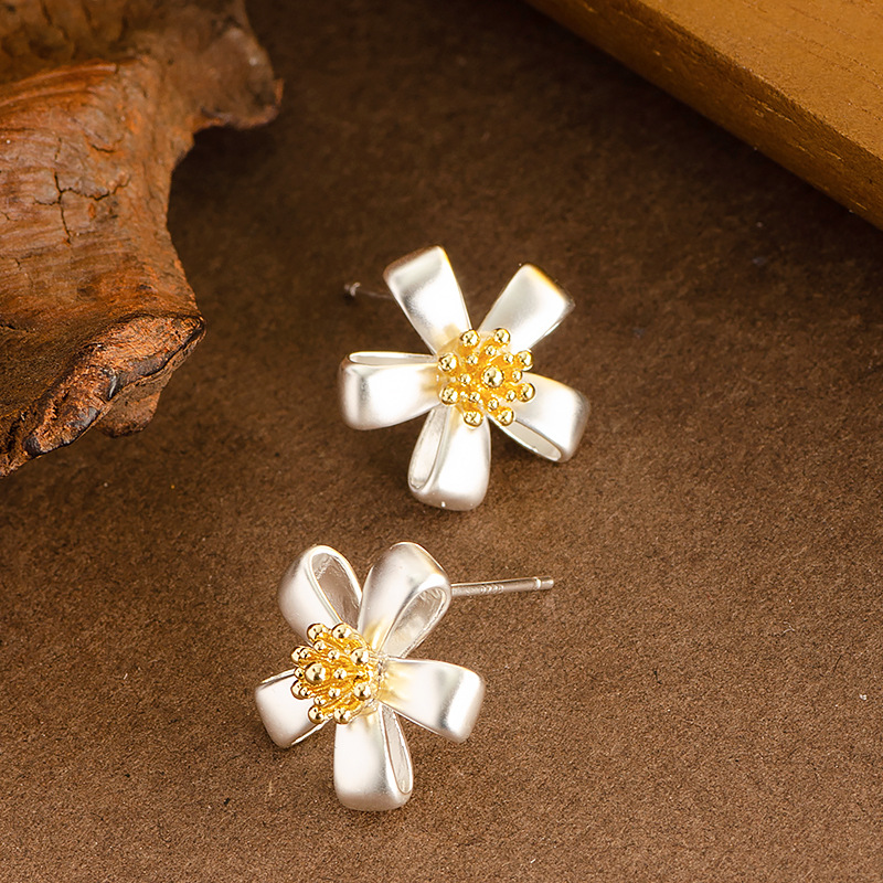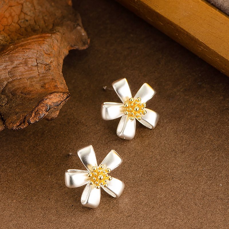 Латуни Стад Серьги, Латунь, Форма цветка, плакированный настоящим серебром, Женский, не содержит свинец и кадмий продается Пара