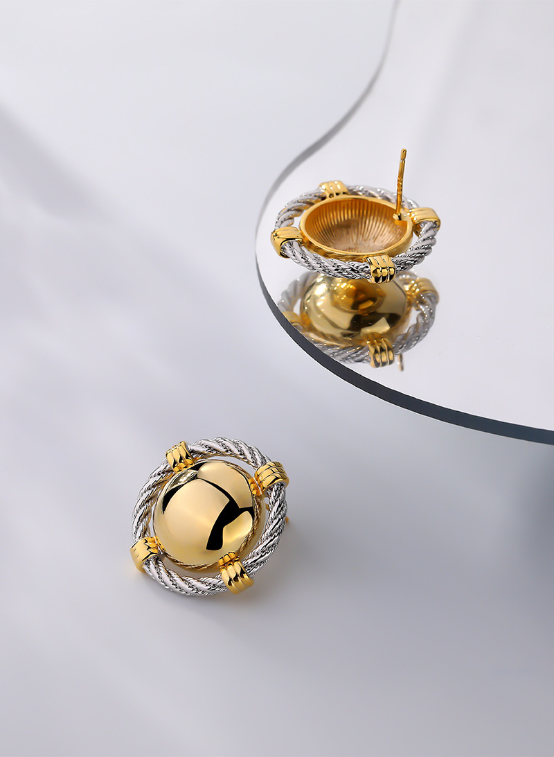 Латуни Стад Серьги, Латунь, Другое покрытие, ювелирные изделия моды, два разных цвета, продается Пара
